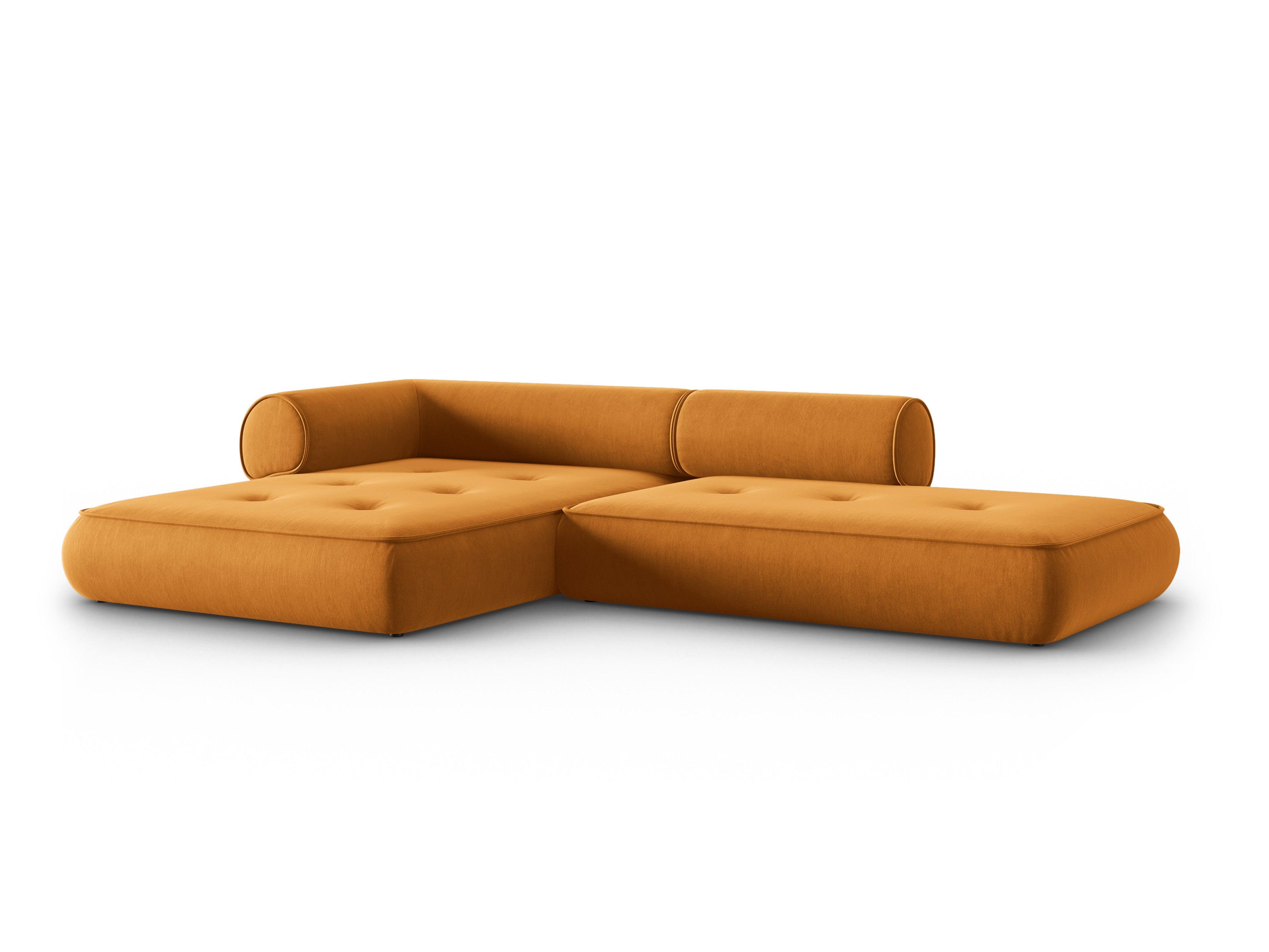 Hoekbank in chenille stof links open LILY mosterdgeel