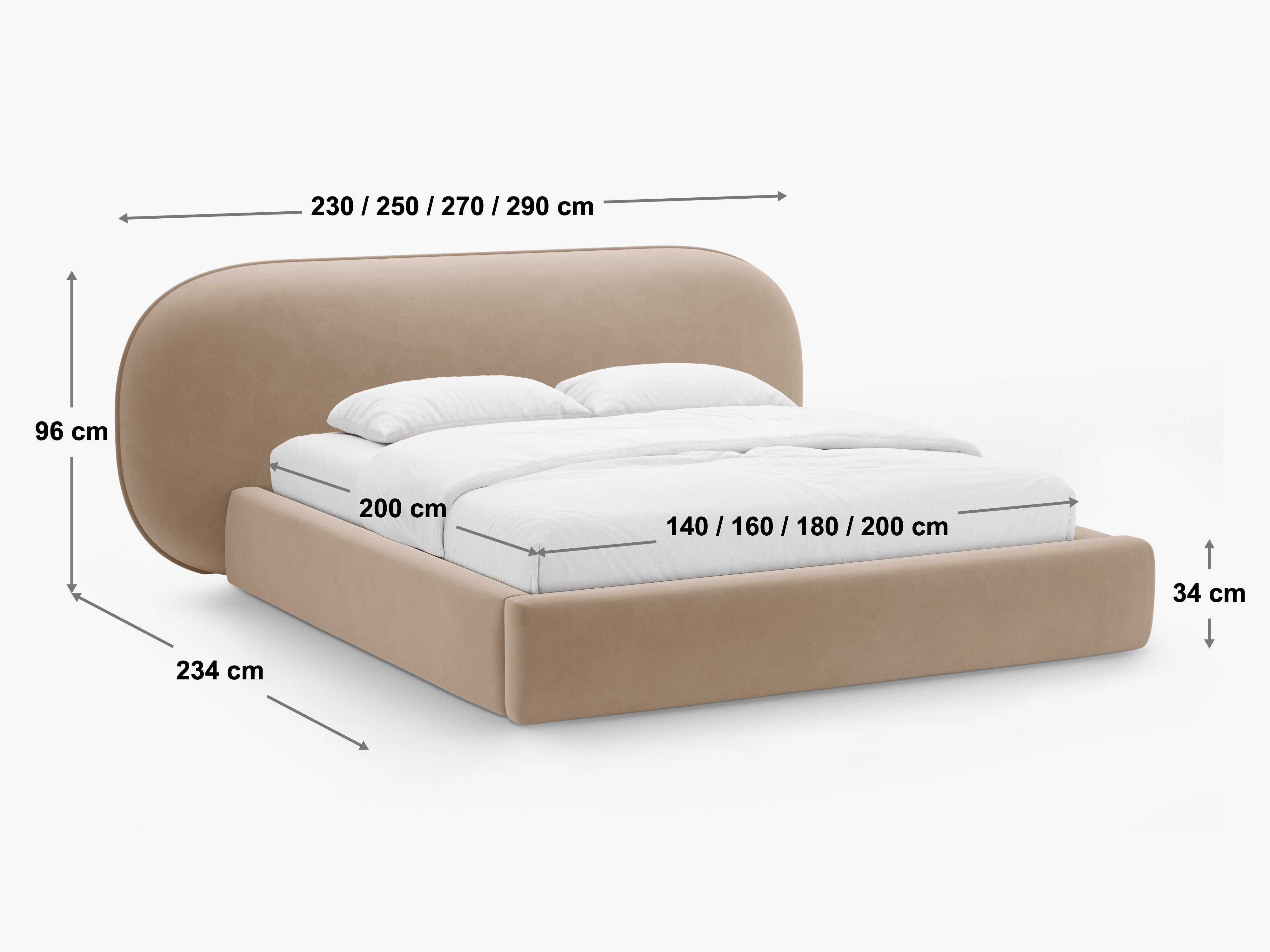 Bed Ovalo valt op door zijn zachte, afgeronde vorm, die rust en een gezellige sfeer in de slaapkamer brengt. De delicate lijnen en volle vormen maken dat het gestoffeerde bed voor de slaapkamer een harmonisch element van het interieur wordt, perfect passend in moderne inrichtingen. De afgeronde, massieve hoofdbord omarmt en biedt comfortabele ondersteuning tijdens dagelijkse rust, waardoor een comfortabele ontspanningsruimte ontstaat.
