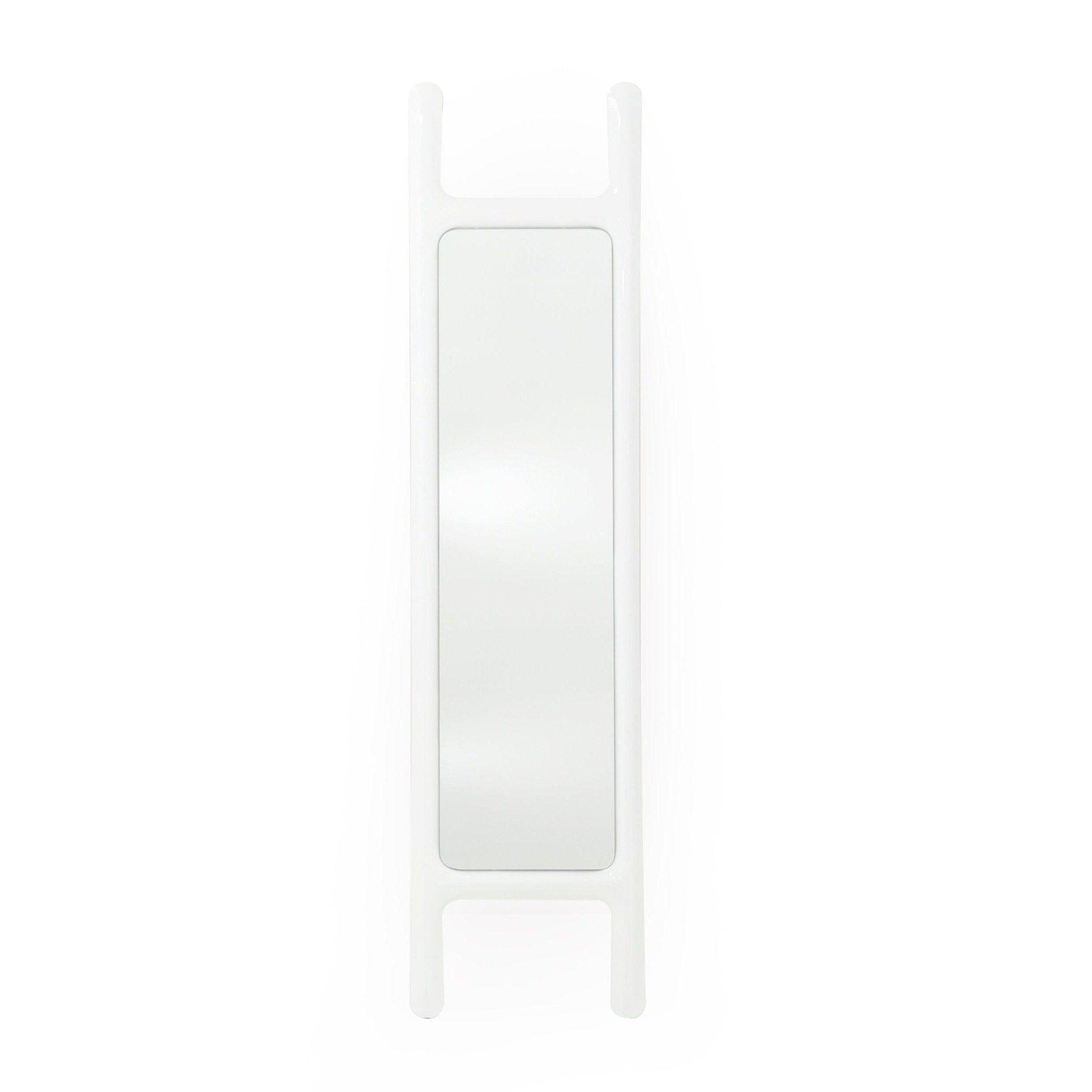 Witte, glanzende spiegel Drab is een bijzondere combinatie van functionaliteit en moderne esthetiek, die een innovatieve benadering van het klassieke ladderframe-ontwerp introduceert. Het maakt deel uit van de Drab-familie, die nieuwe aspecten toevoegt aan de bekende en populaire constructie.