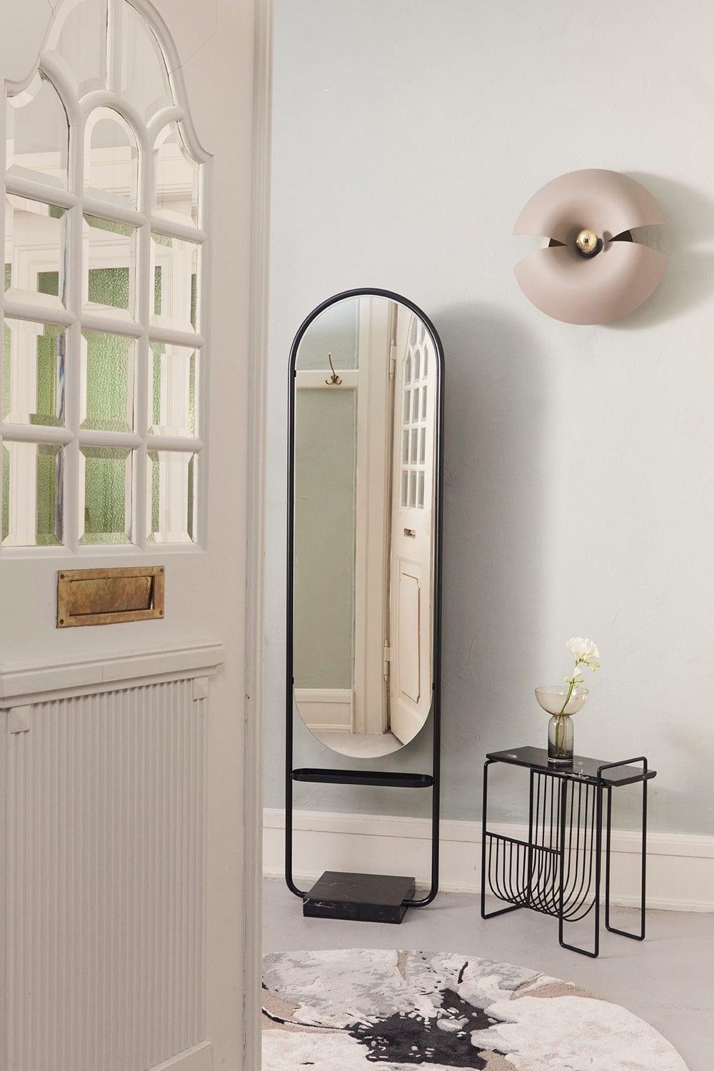 Lustro podłogowe Angui jest zarówno efektowne, jak i praktyczne. Będzie stanowić piękny dodatek do każdego wejścia, holu, a także salonu czy sypialni, dzięki eleganckiemu kształtowi. Stabilna, marmurowa podstawa zapewnia solidność lustra, a mała półka jest idealnym miejscem na wszelkie drobiazgi.