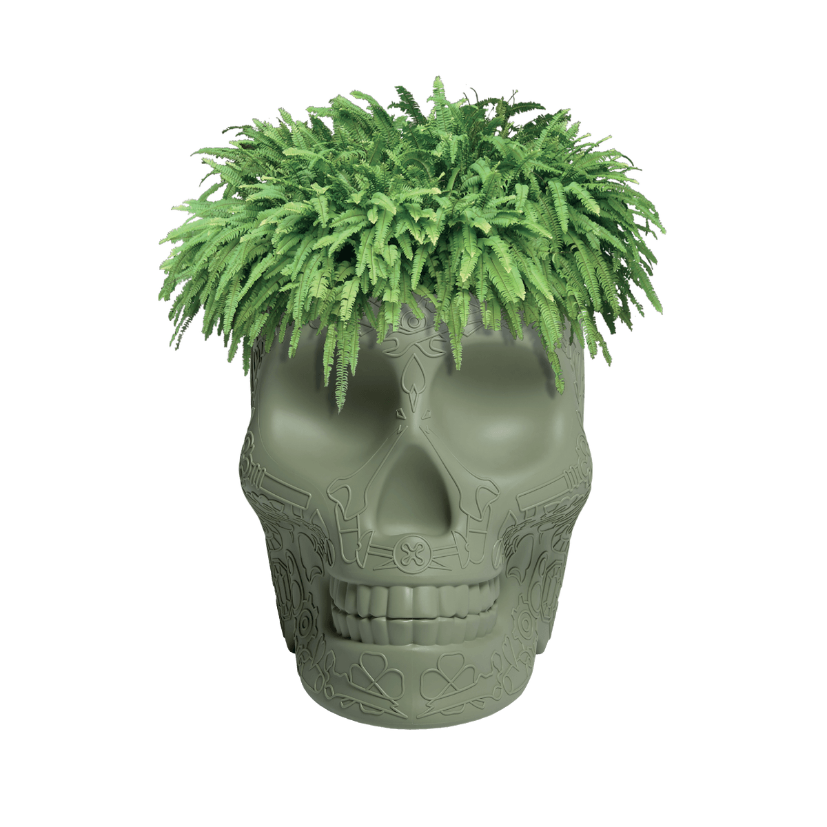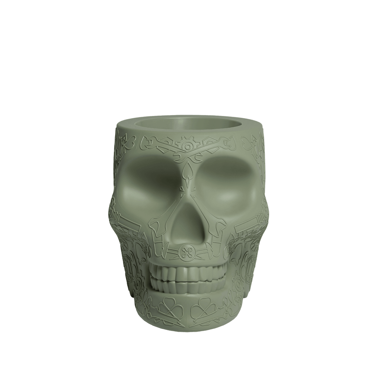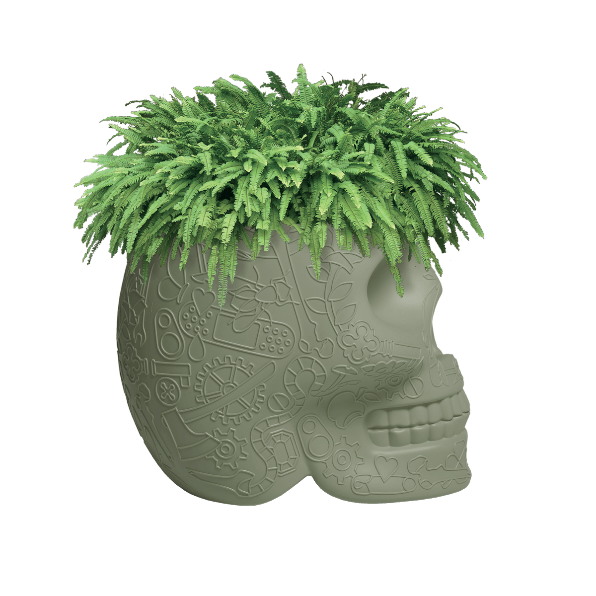 Mexico naar avant-gardistische bloempot, ontworpen door Studio Job in de vorm van een schedel met een grafisch patroon op het oppervlak. Dit is een ontwerp geïnspireerd door het feest van de doden - Día de los Muertos, dat uitbundig wordt gevierd in Mexico. Dit kleurrijke en muzikale evenement heeft een buitengewoon vrolijk karakter, wat de makers hebben geprobeerd vast te leggen in het ontwerp.
