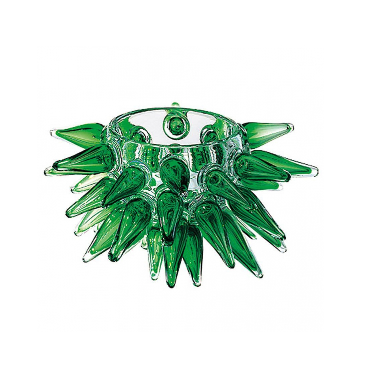 Miska Pino to niezwykły projekt autorstwa Boreka Sipeka, łączący artystyczną ekspresję z funkcjonalnością. To dekoracyjne naczynie w formie misy przyciąga wzrok zielonymi szklanymi wypustkami, które przypominają kolczaste ozdoby lub liście egzotycznych roślin, tworząc pełną energii, organiczną kompozycję.