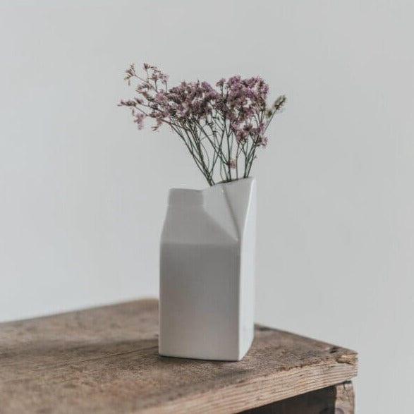 Mlecznik wykonano z białej porcelany.