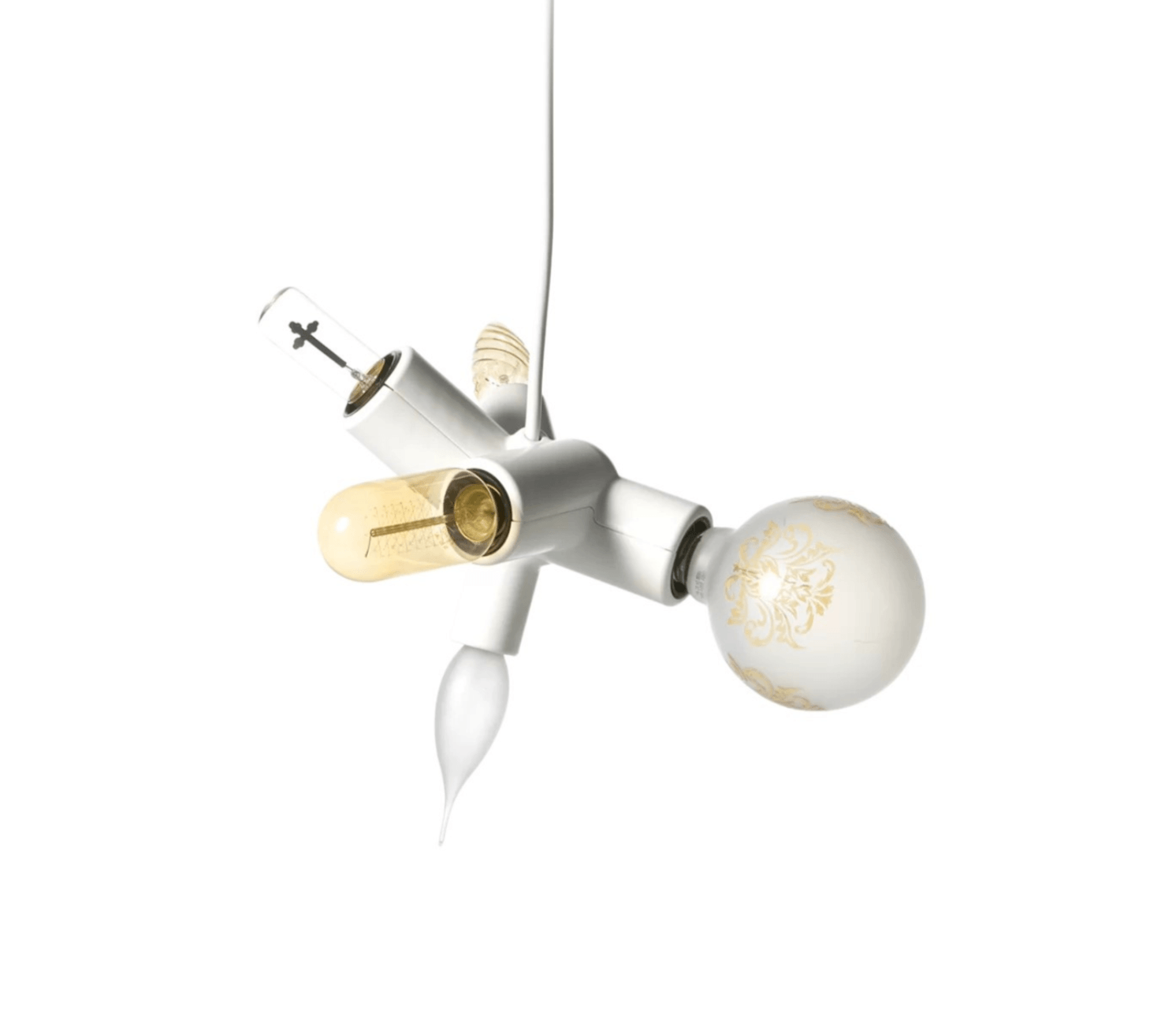 De bevestiging maakt het mogelijk om vijf lichtbronnen naar keuze te gebruiken. Grote lampen, kleine lampen, gekleurd glas, mat glas, ronde lampen, vlamlampen, buislampen, enzovoort. De mogelijkheden en combinaties zijn eindeloos. Laat je verbeelding de vrije loop en creëer jouw eigen, unieke Cluster lampbevestiging!
