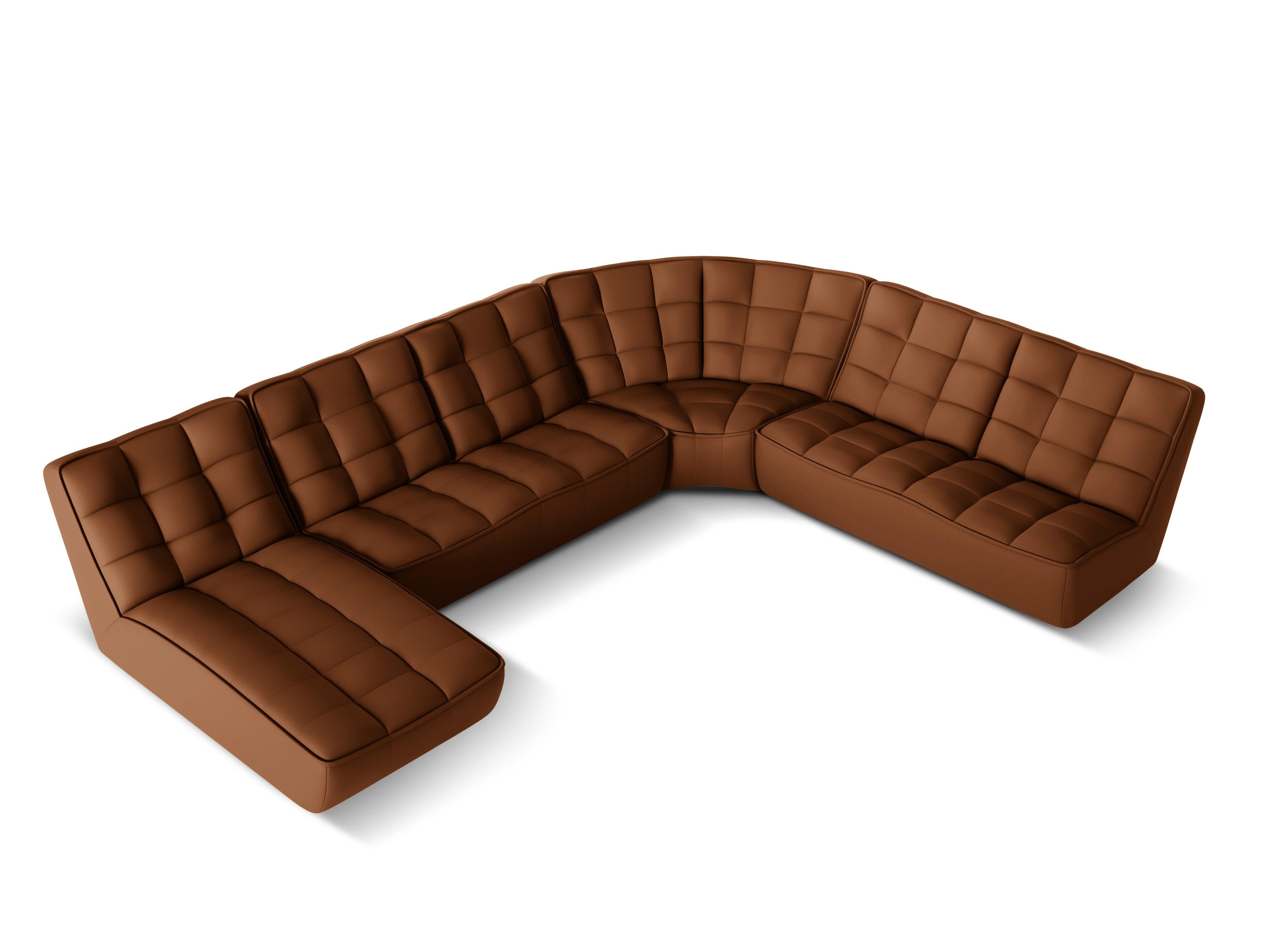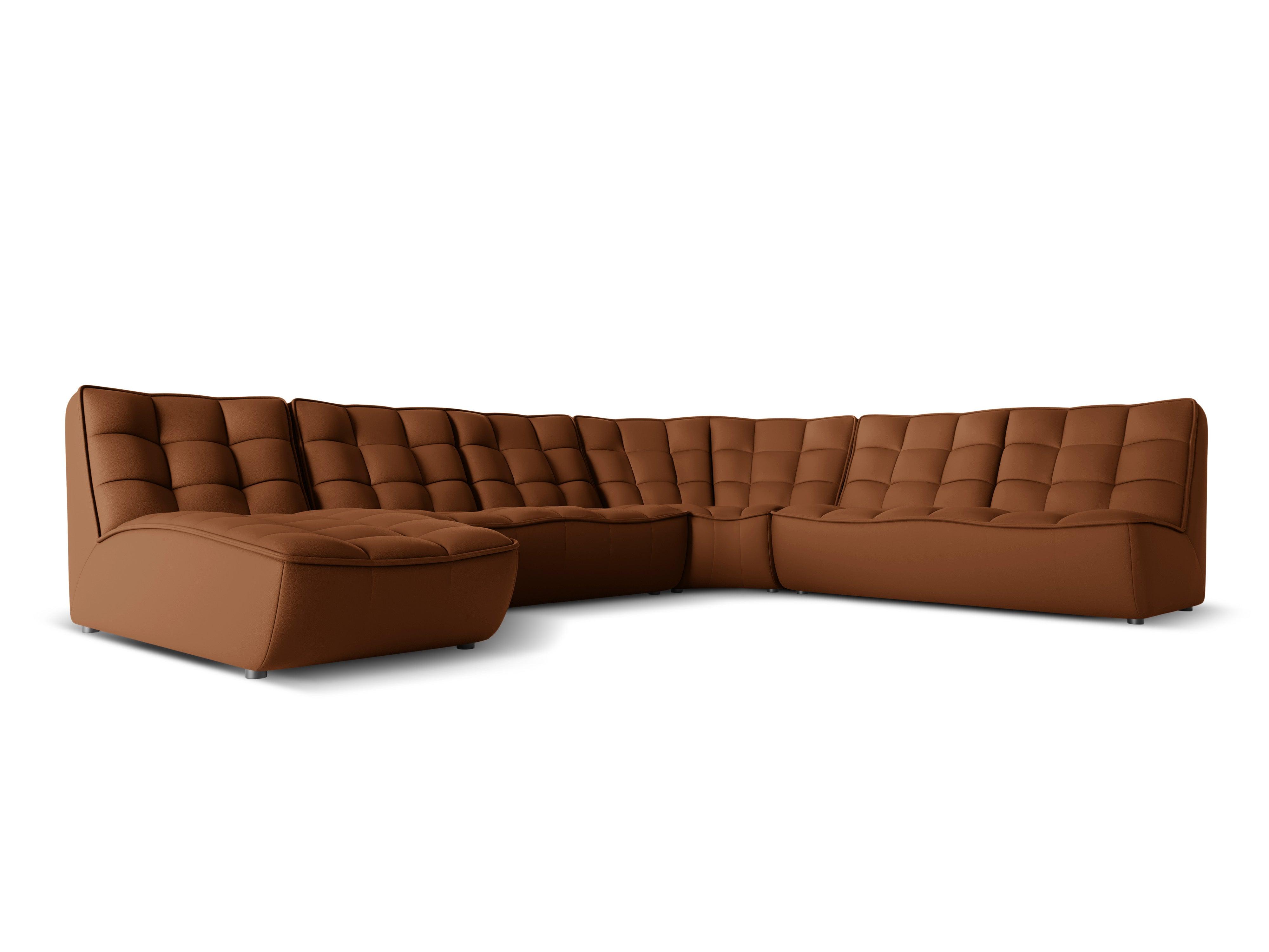 Bruine panoramische leren hoekbank rechts MONI