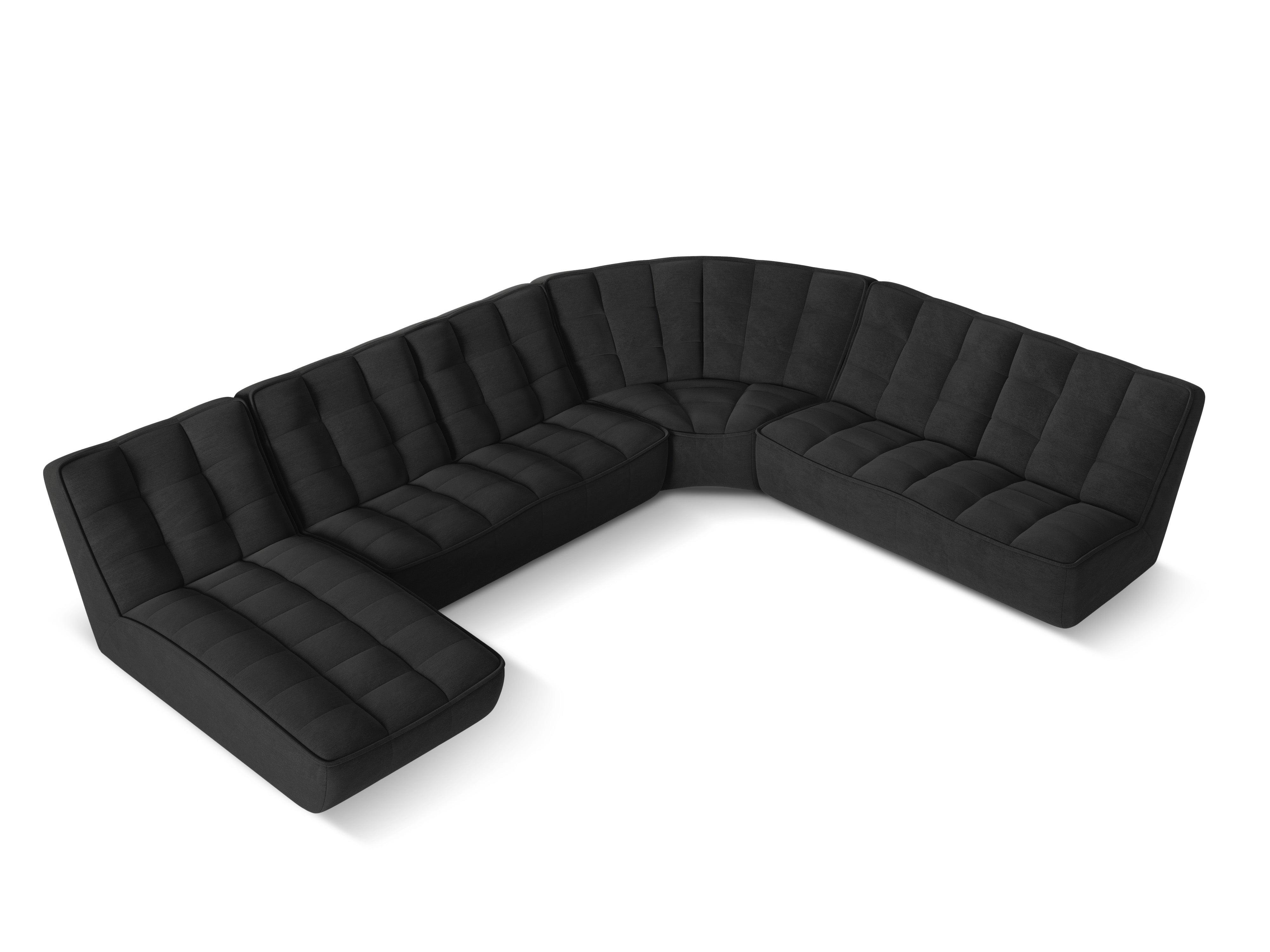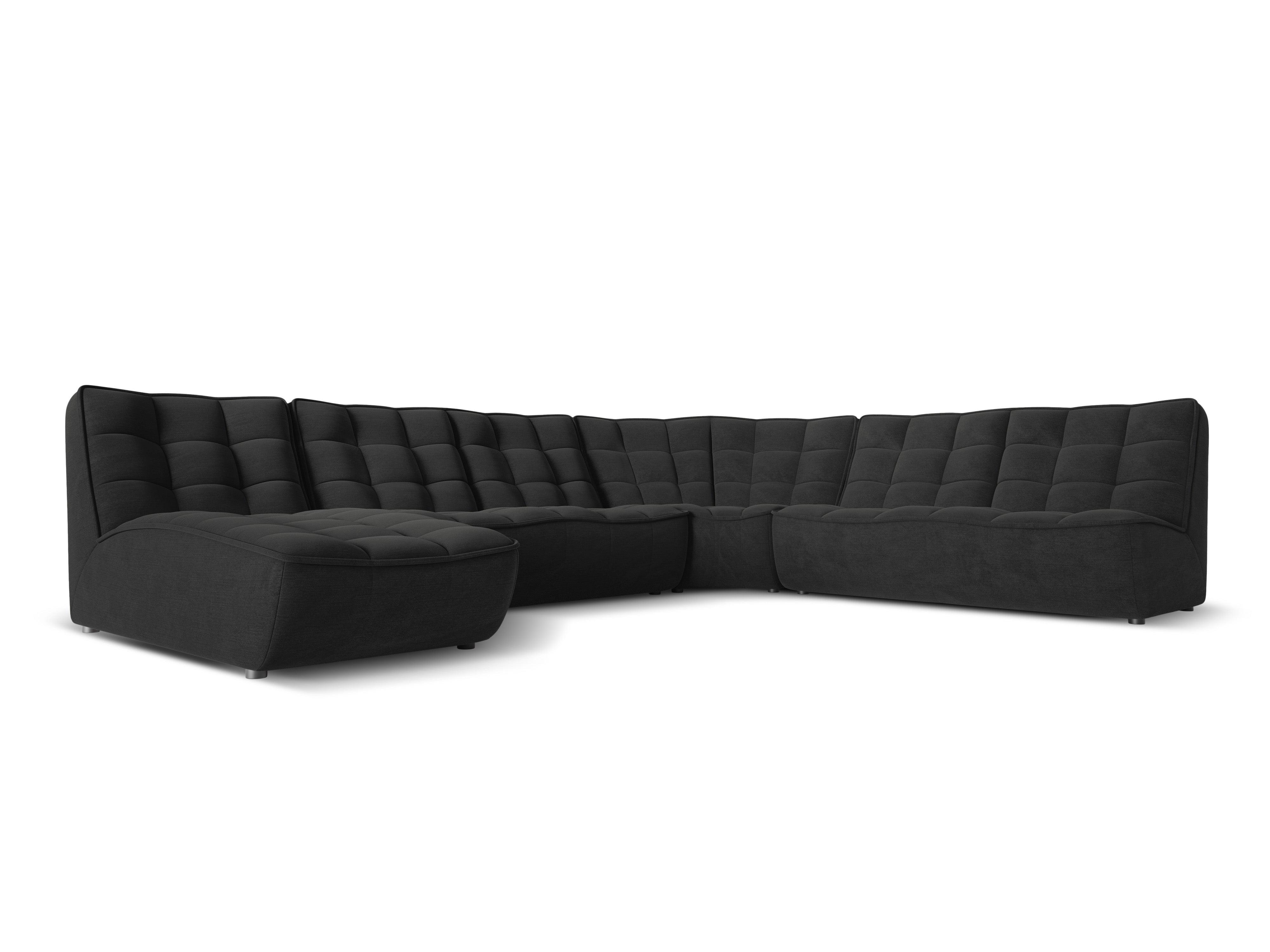 De bekleding van de gestructureerde stof, waarvan de fijngeweven structuur doet denken aan fluweel met een ongelijkmatige oppervlakte, is aangenaam aanvoelend en uitzonderlijk duurzaam. Ergonomische vormen zorgen voor een vrije ondersteuning van de hele rug. De collectie Moni omvat verschillende combinaties van banken en hoeksalons, evenals elementen zoals chaise longues en poefs.