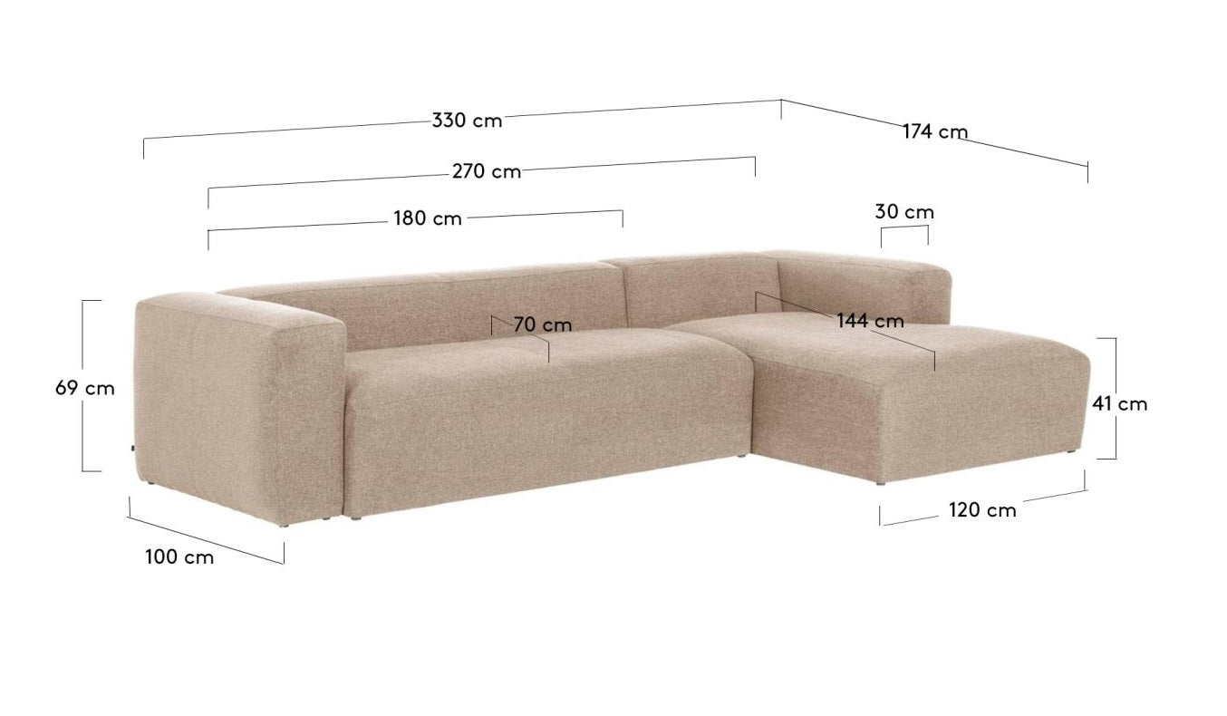 Beige szenil rechtszijdige 4-persoons hoekbank BLOK