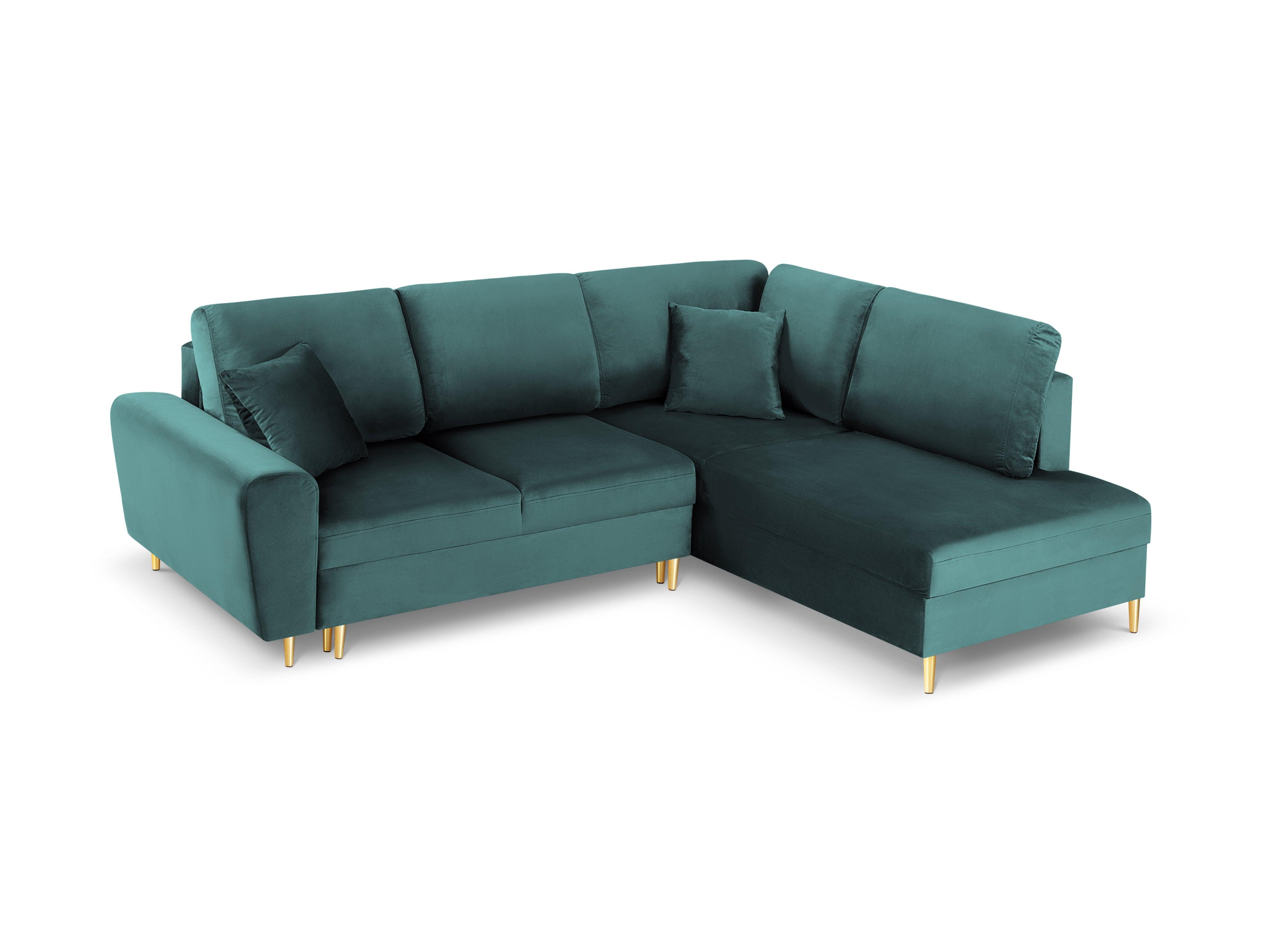 Rechthoekige 5-persoons bank met slaapfunctie KYOTO petrol met gouden basis