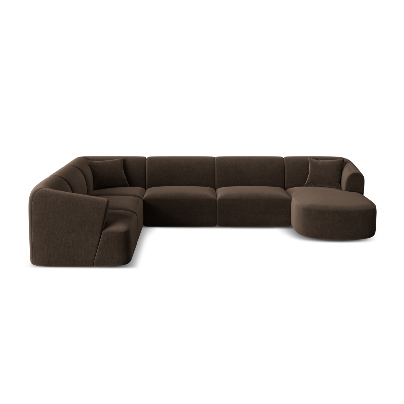 Panoramische linkszijdige fluwelen hoekbank voor 7 personen CAMPI in chocoladebruin