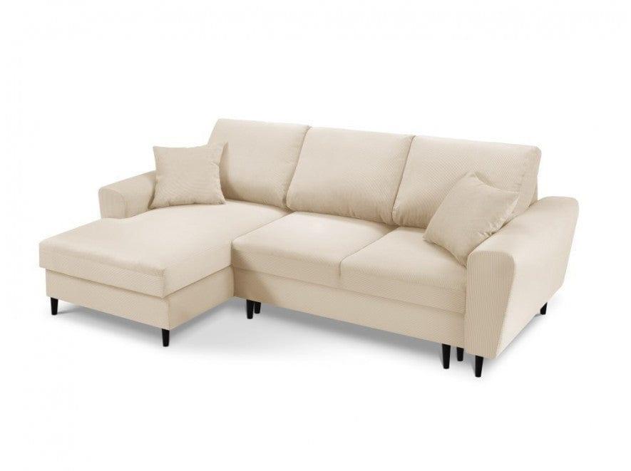 Beige linkszijdige fluwelen hoekbank met slaapfunctie KYOTO