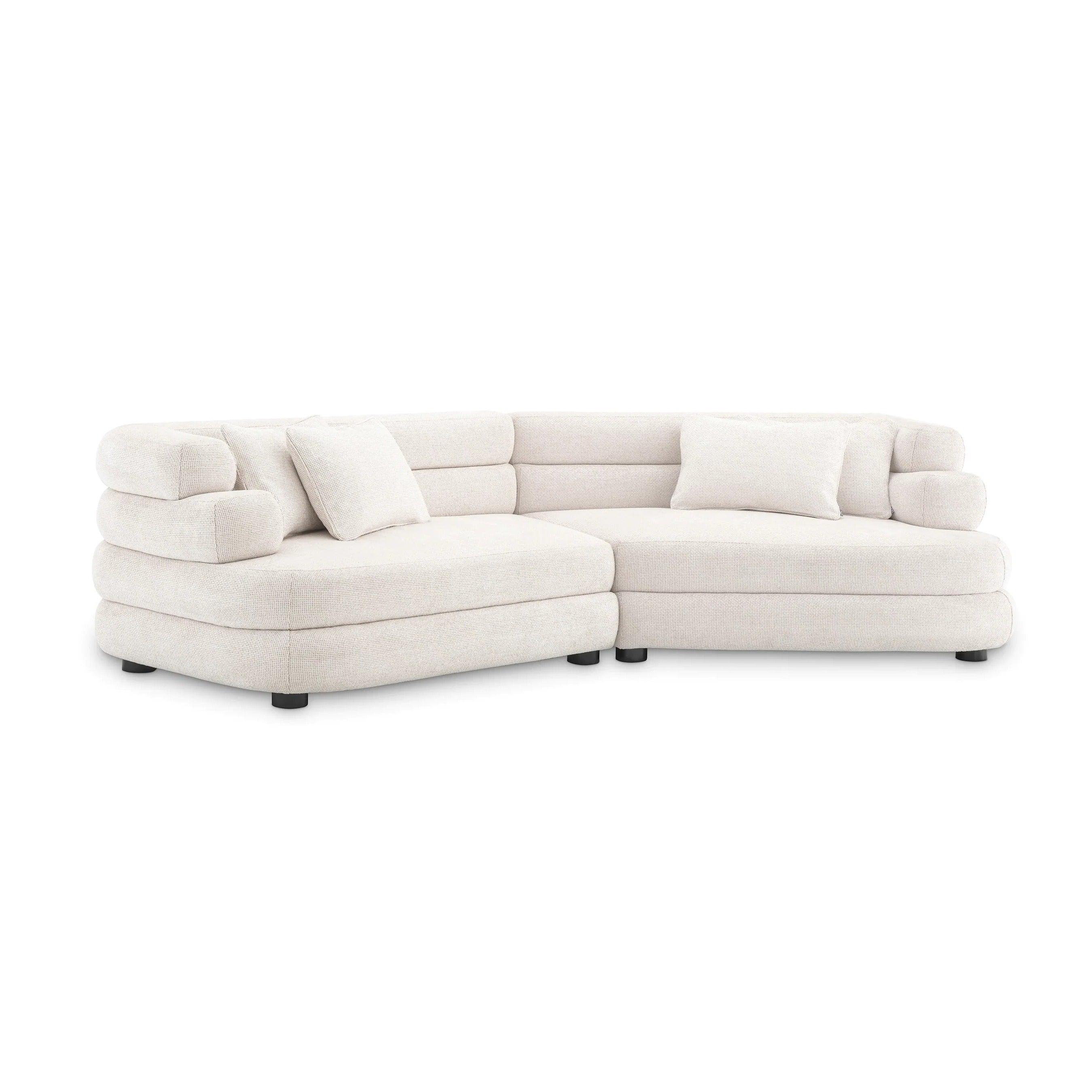 Hoekbank Malaga in gebroken wit is de ware belichaming van elegantie en comfort. Zijn unieke vorm en zwarte poten geven hem een karakteristieke uitstraling, terwijl hij tegelijkertijd uiterst comfortabel en behaaglijk is.
