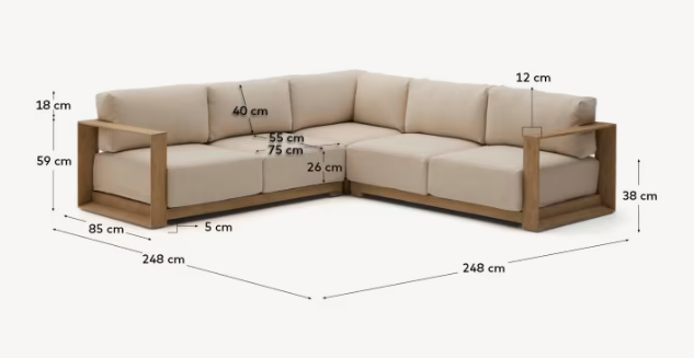 Narożnik zewnętrzny AMBRA drewno akacjowe z kremowym siedziskiem