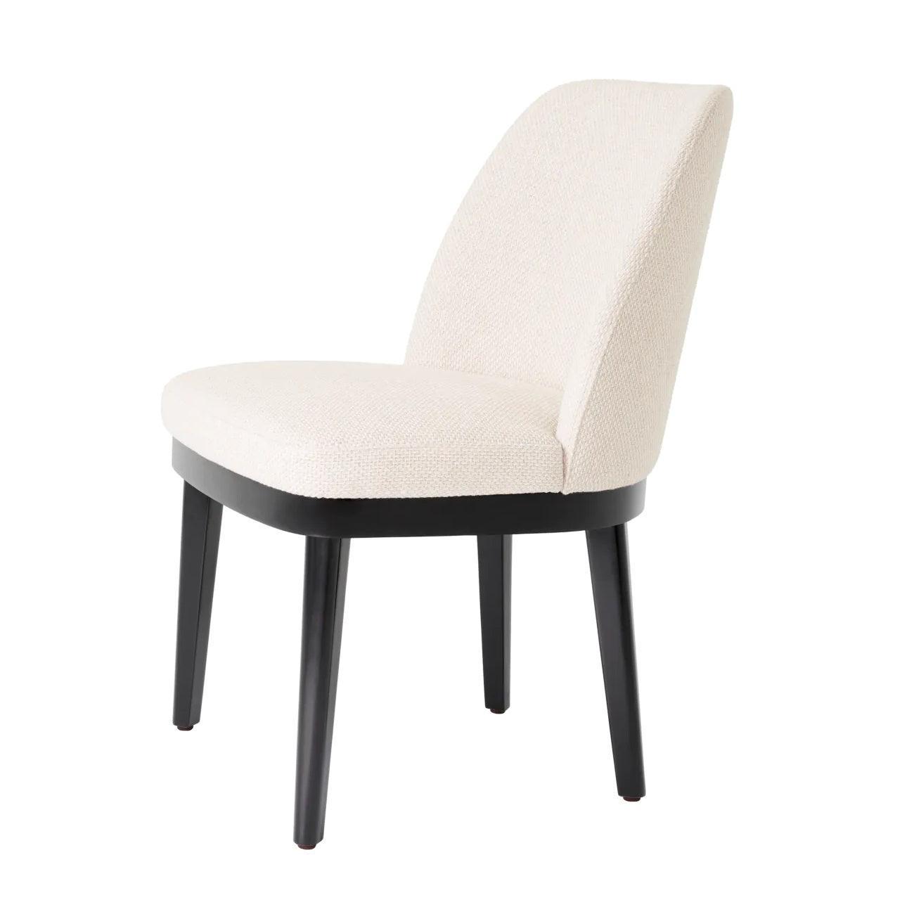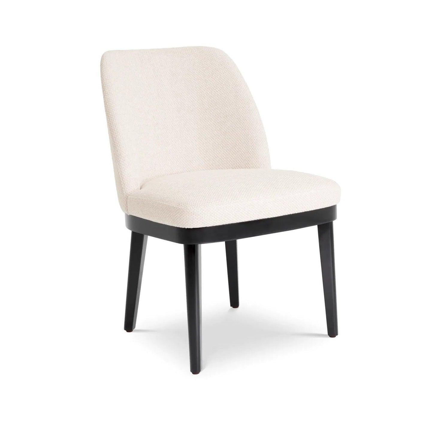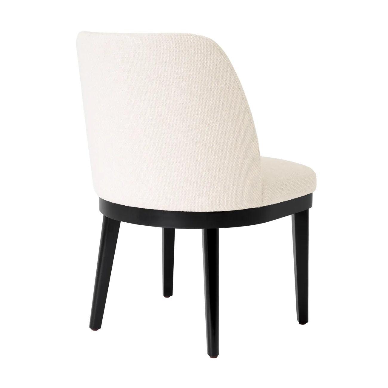 Eetkamerstoel Costa is de belichaming van elegantie en comfort. De zitting, bekleed met een unieke witte stof, is niet alleen ongelooflijk comfortabel, maar voegt ook een subtiele, maar duidelijke luxe-accent aan uw interieur toe. Deze bekleding, met een verfijnde en delicate tint, contrasteert perfect met de diepe zwarte poten, waardoor de stoel een tijdloos en veelzijdig karakter krijgt.