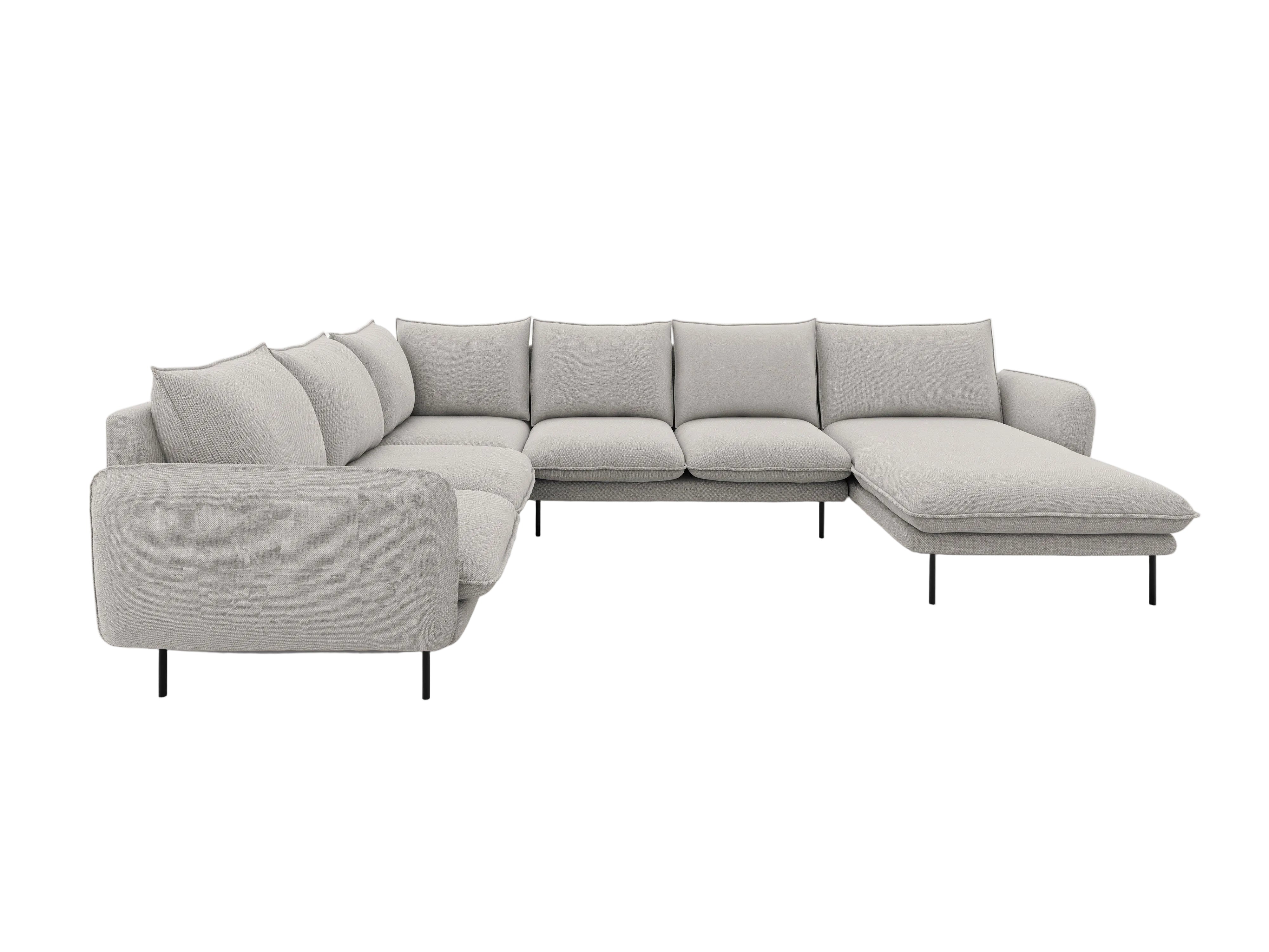 Panoramische linkerhoekbank voor 7 personen VIENNA lichtgrijs chenille met zwarte basis