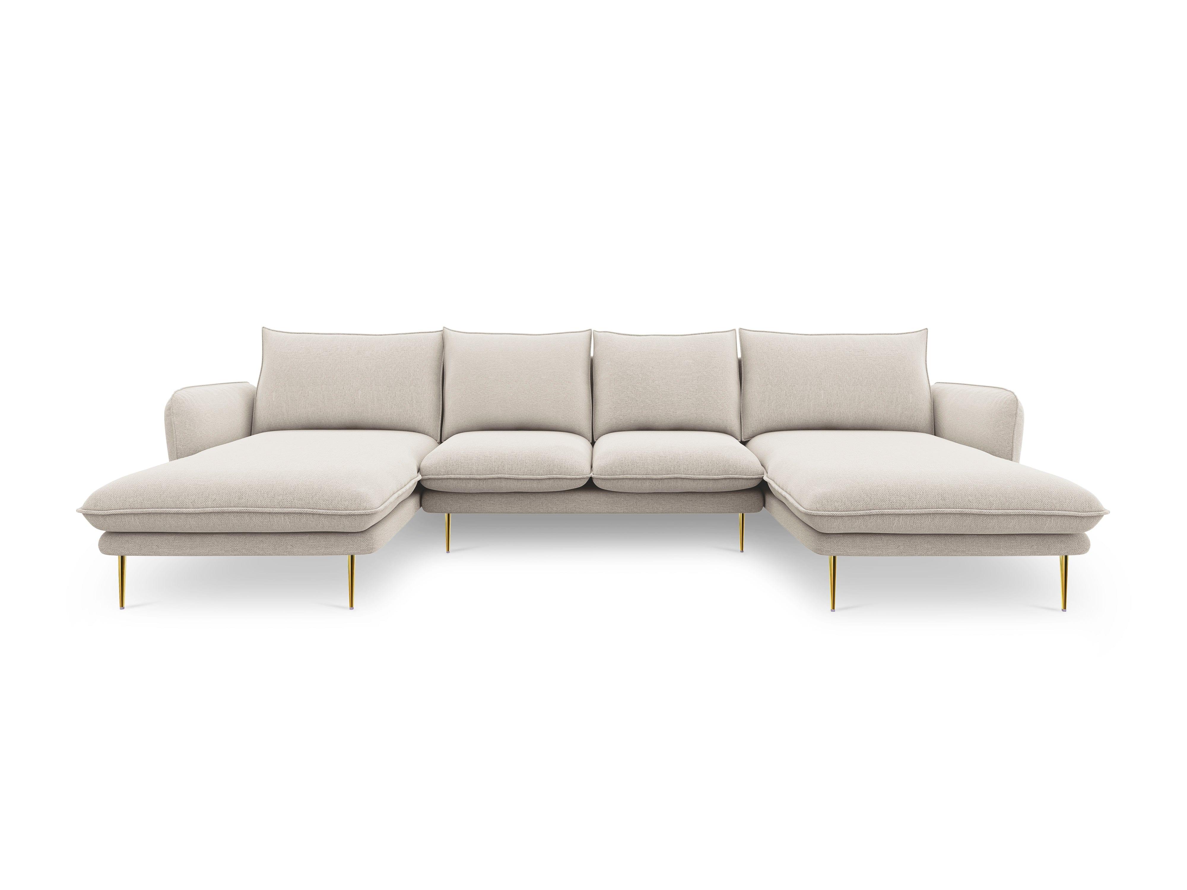 Panoramische bank voor 6 personen VIENNA lichtbeige chenille met gouden basis