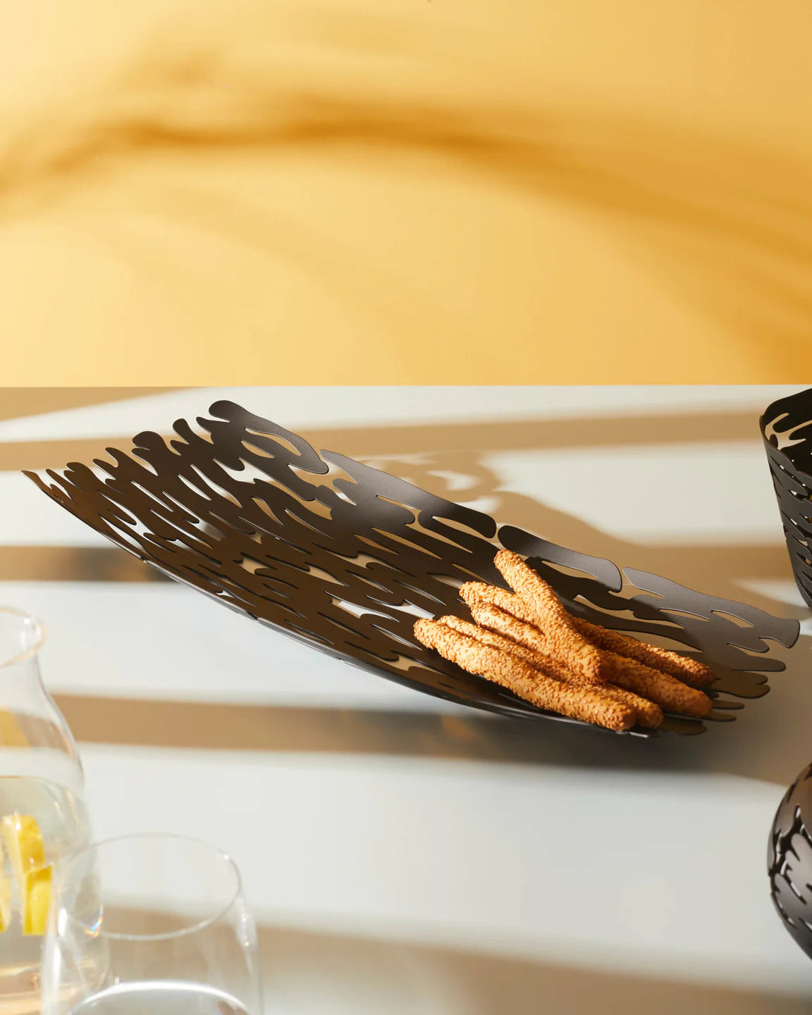 Patera Barknest is een elegante schaal geïnspireerd op de natuurlijke uitstraling van boomschors, die op subtiele wijze verwijst naar de omringende natuur. Het geperforeerde patroon roept de delicate lijnen van de houtstructuur op, terwijl de afgeronde vorm een gezellige ruimte creëert voor het opbergen van fruit, brood of andere kleine voorwerpen. Patera is perfect als decoratief element en voegt verfijning toe aan elk interieur, terwijl het tegelijkertijd zijn praktische functie behoudt. Het maakt deel uit van de Bark-collectie, die esthetiek harmonieus verbindt met de natuur en een moderne uitstraling geeft.