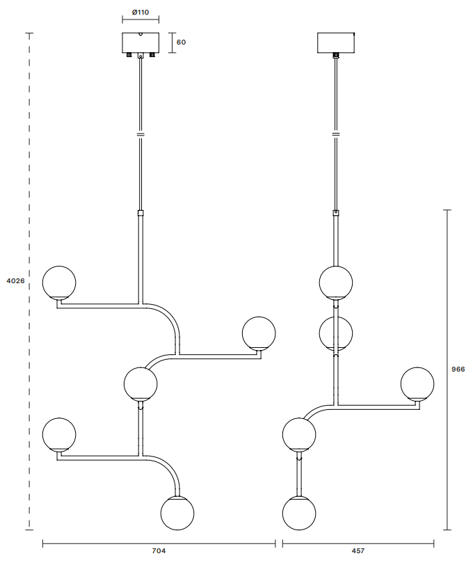 Hanglamp Mobil Grand is een opvallend ontwerp geïnspireerd op de New Yorkse architectuur en industriële esthetiek. De constructie doet denken aan zwarte metalen balustrades van balkons en lantaarns van de Brooklyn Bridge. Mobil valt op door de asymmetrische compositie van bolvormige kappen die zijn samengevoegd in een grafische, ritmische structuur – die doet denken aan een moderne sculpturale vorm die in de ruimte hangt.