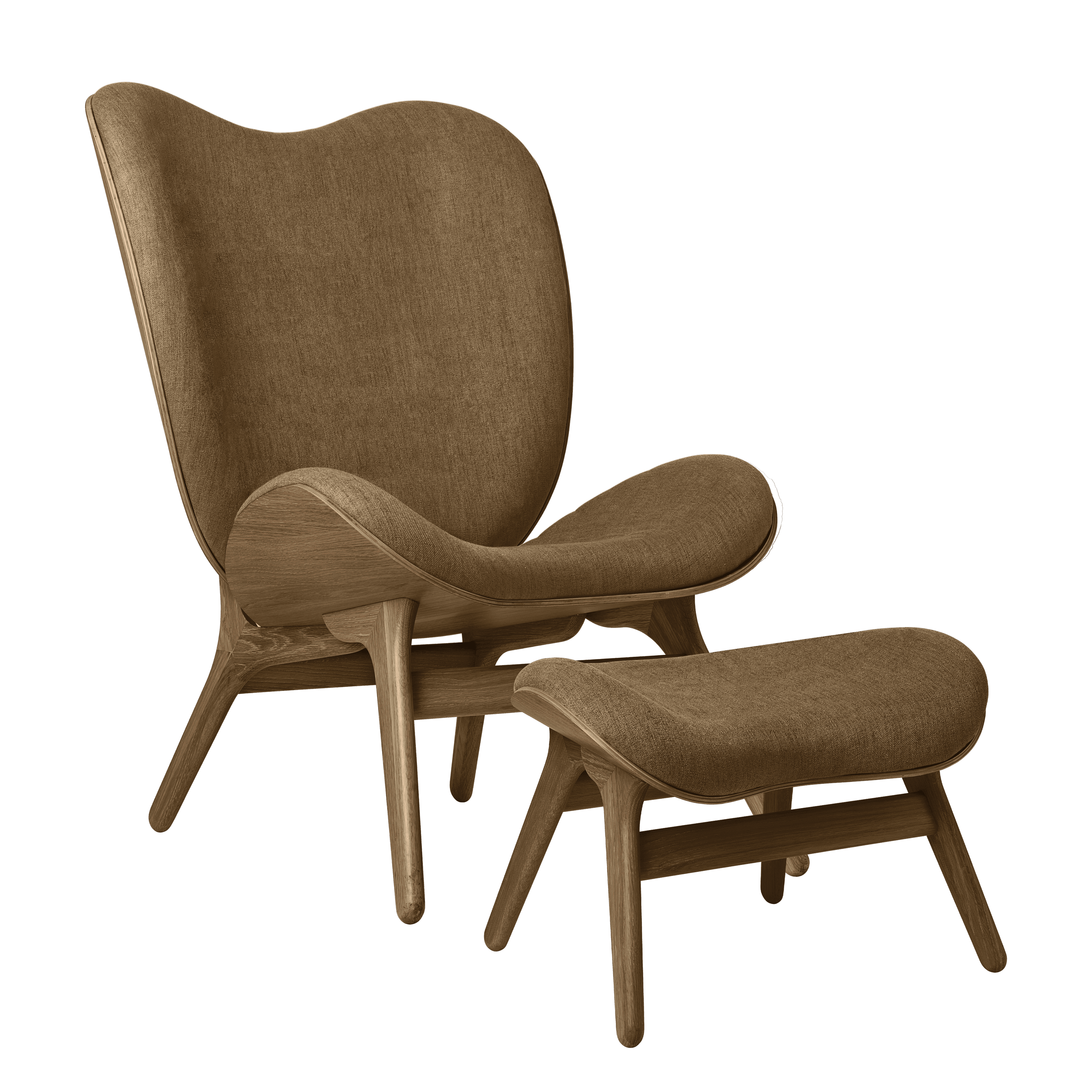 Fauteuil CONVERSATION PIECE TALL karamelkleurig met een donker eiken basis