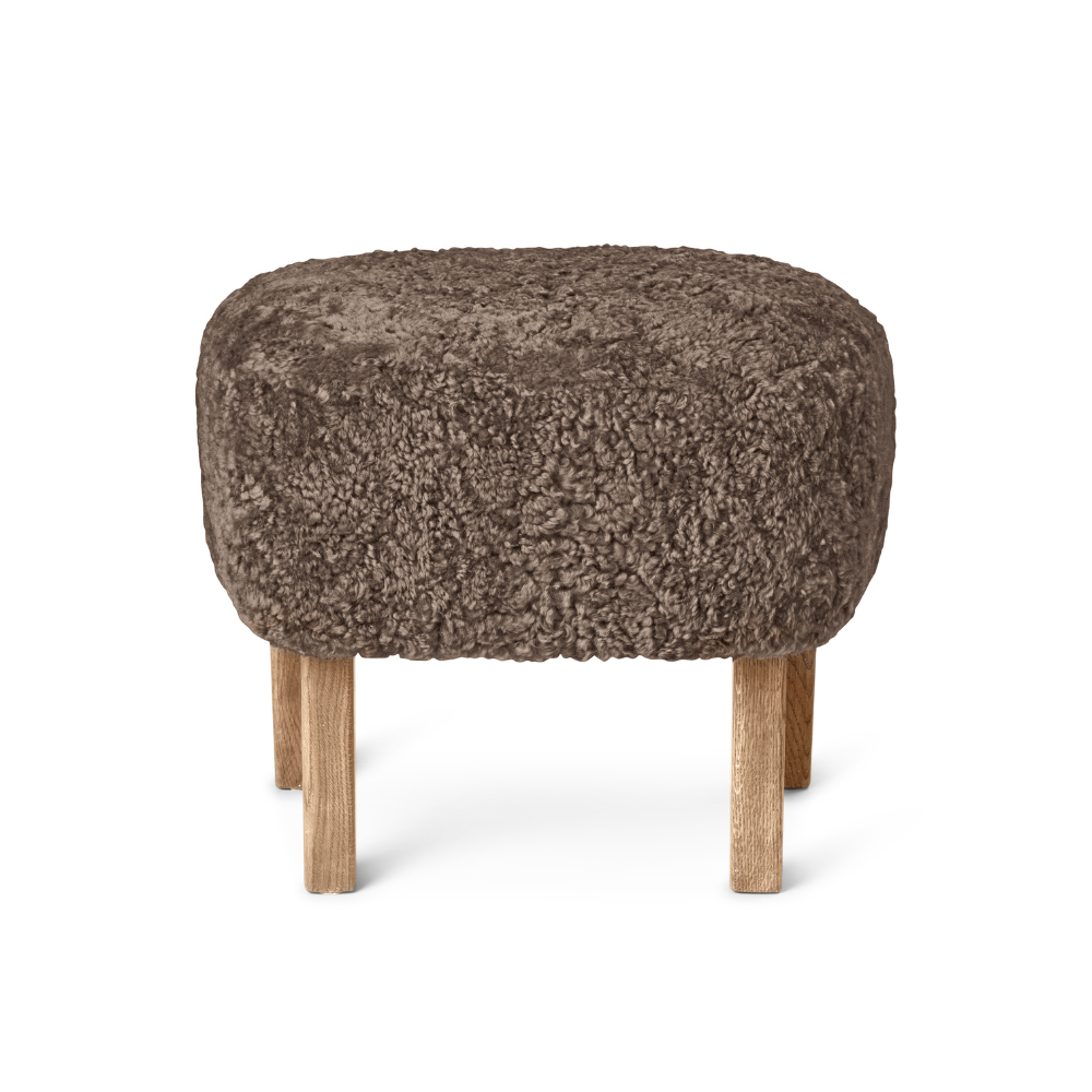 Voetenbank INGEBORG bruin schapenleer met eiken basis