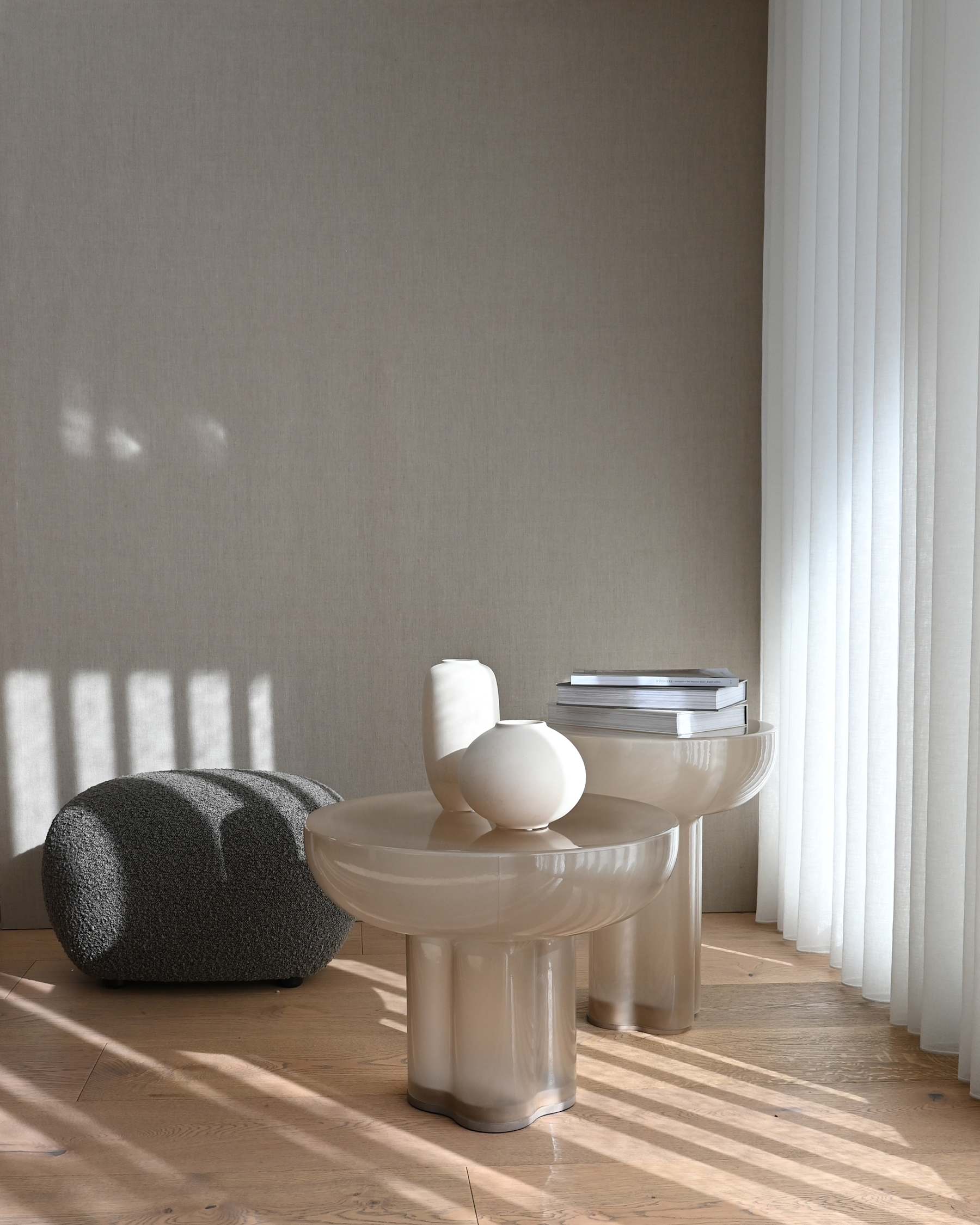 Voetenbank TOE grijs-bruin bouclé