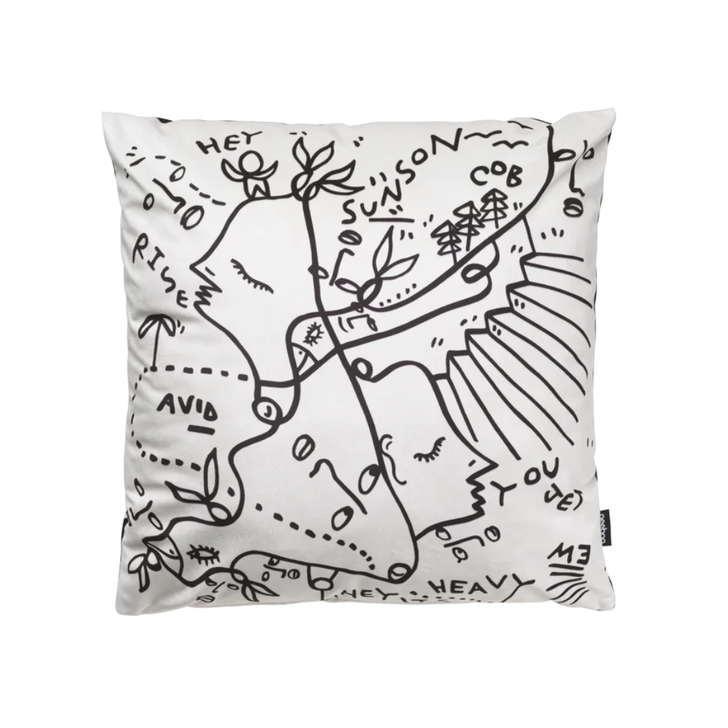 Kussen Energetic Expressions is een opvallend accent dat artistieke energie en een unieke karakter in uw interieur brengt. Beide zijden van het kussen zijn versierd met een zwart-wit print van Shantell Martin, bekend om haar dynamische lijnen en expressieve vormen. Haar unieke grafische stijl is een perfecte aanvulling op moderne, minimalistische en creatieve inrichtingen.