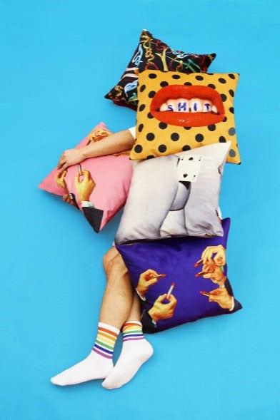 Designer kussen van de Italiaanse koning van de avant-garde — Seletti, die als een poort naar een andere, surrealistische dimensie, uw interieur een unieke karakter zal geven. Levendige, dynamische kleuren en een licht controversiële collage vormen een origineel kunstwerk.