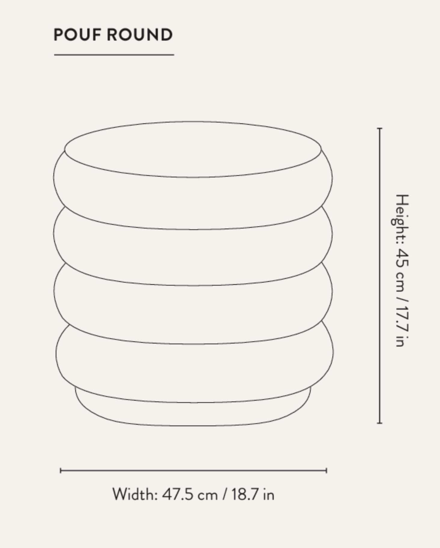 De poef Round is een uniek meubelstuk dat modern design combineert met gebruikscomfort. Dankzij de vier grafische niveaus, de poef trekt niet alleen de aandacht, maar voegt ook diepte en dimensie toe aan elke ruimte. Zijn afgeronde vorm, geïnspireerd op geometrie, geeft het meubel een eenvoudige, maar tegelijkertijd organische uitstraling die past bij verschillende inrichtingsstijlen. De poef Round is een uitstekende aanvulling voor ruime woonkamers, slaapkamers of wachtruimtes, en brengt een subtiele elegantie en moderniteit in de kamer.