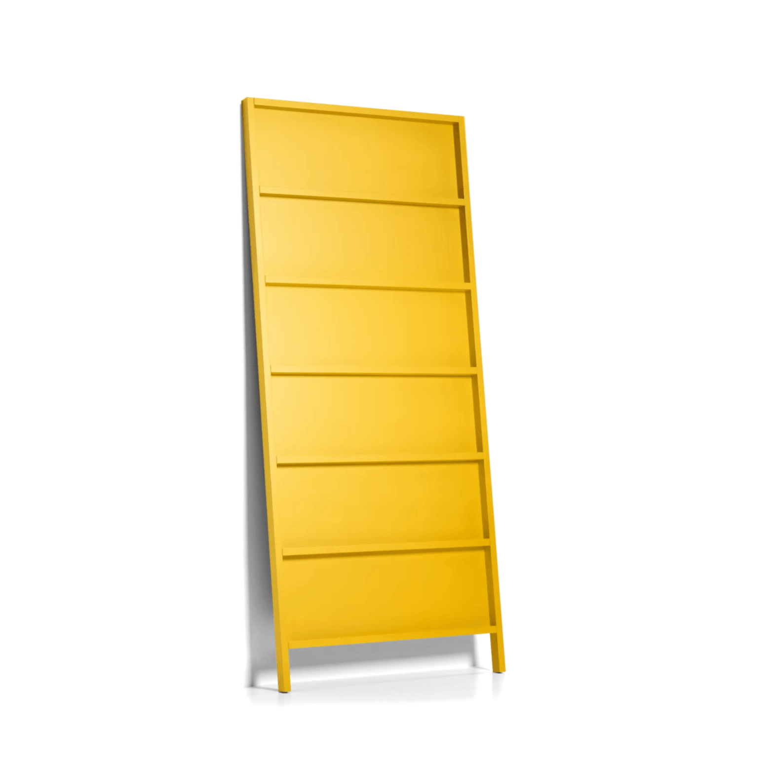 Boekenkast Oblique is een combinatie van een kast en een wandplank. Laat het uw inspiratiebord voor uw levensstijl worden. Toon al uw favoriete publicaties, bedrijfsbladen, brochures, gidsen of foto's op de meest elegante manier. Oblique is beschikbaar in 32 kleuren en 2 modellen.
