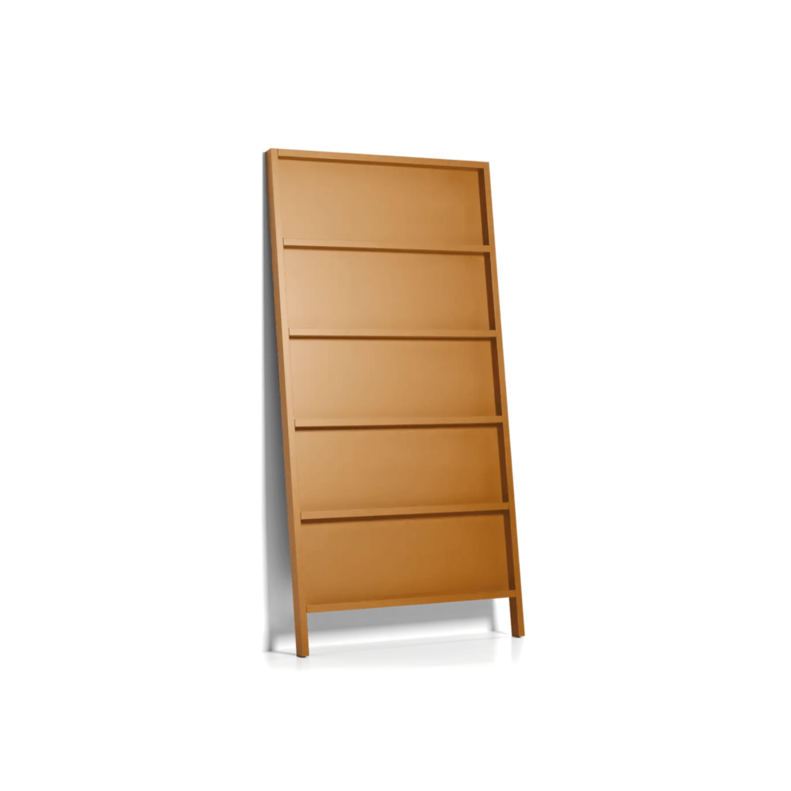 Oblique voegt een persoonlijke touch toe aan uw interieur. Steunend tegen de muur, met een verhoogde rand die ervoor zorgt dat alles op zijn plaats blijft. Deze elegante boekenkast past perfect bij verschillende interieurstijlen en vormt een stijlvolle en functionele aanvulling op uw decor.