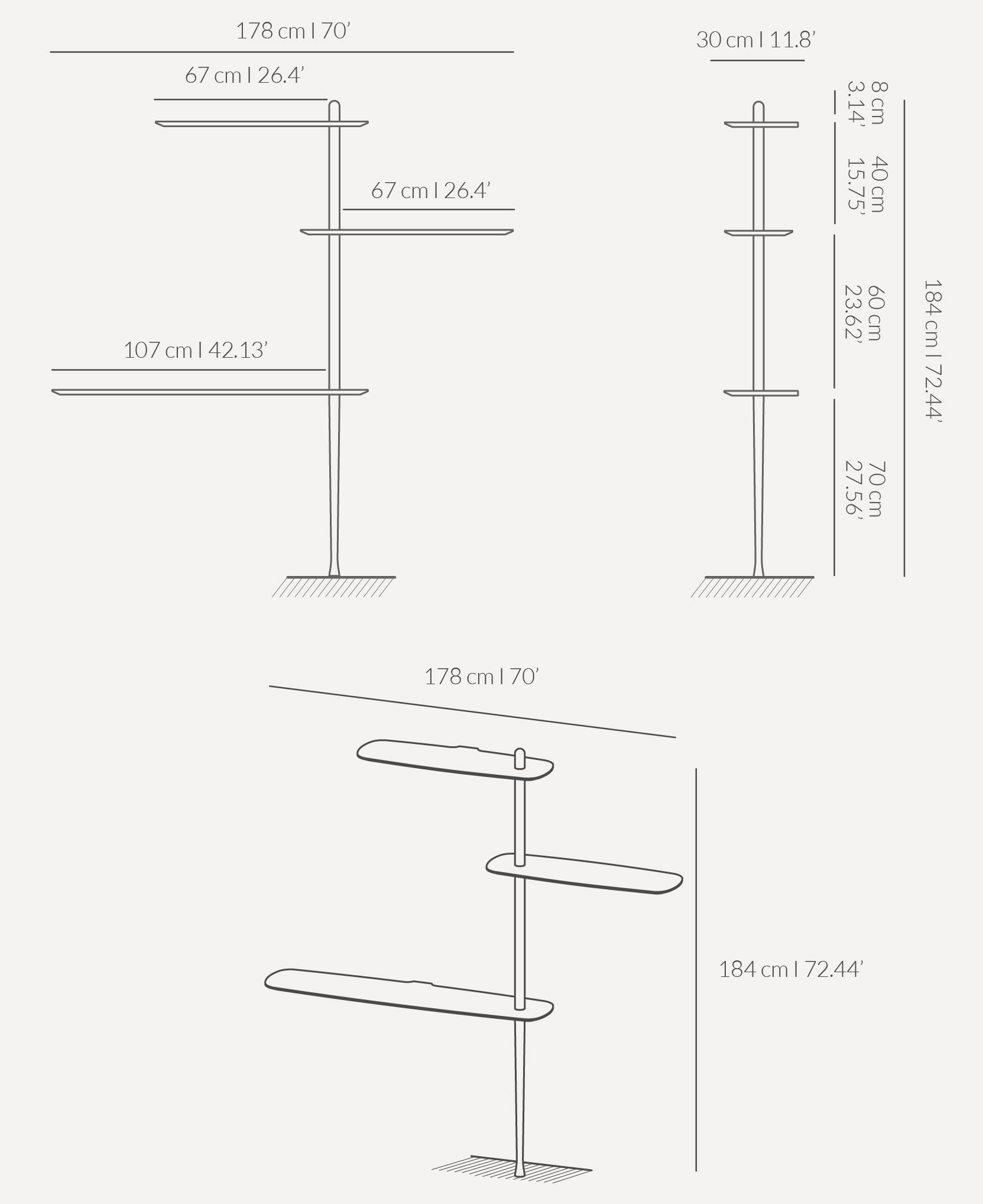 Moderne plank Unica in configuratie 04 is een modulair systeem dat het mogelijk maakt om een opvallende en functionele wandcompositie te creëren. De slanke constructie, gebaseerd op een centrale verticale steun en asymmetrisch geplaatste planken, geeft het geheel een lichte uitstraling, waardoor deze design plank perfect past in zowel privé- als commerciële ruimtes.