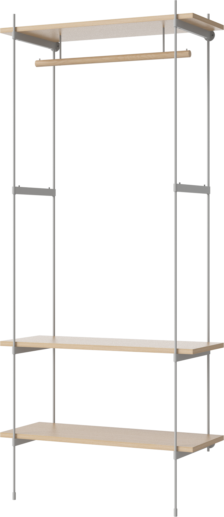 Rek Rod is een veelzijdig en functioneel opslagsysteem dat volledige creativiteit in interieurontwerp mogelijk maakt. Of u nu droomt van het tentoonstellen van decoraties, een kledinghanger of een bureau gecombineerd met planken, de minimalistische constructie van Rod zal aan uw verwachtingen voldoen. Dankzij de flexibiliteit kan rek Rod worden aangepast aan verschillende behoeften en ruimtes, waarbij zowel esthetiek als functionaliteit worden geboden.