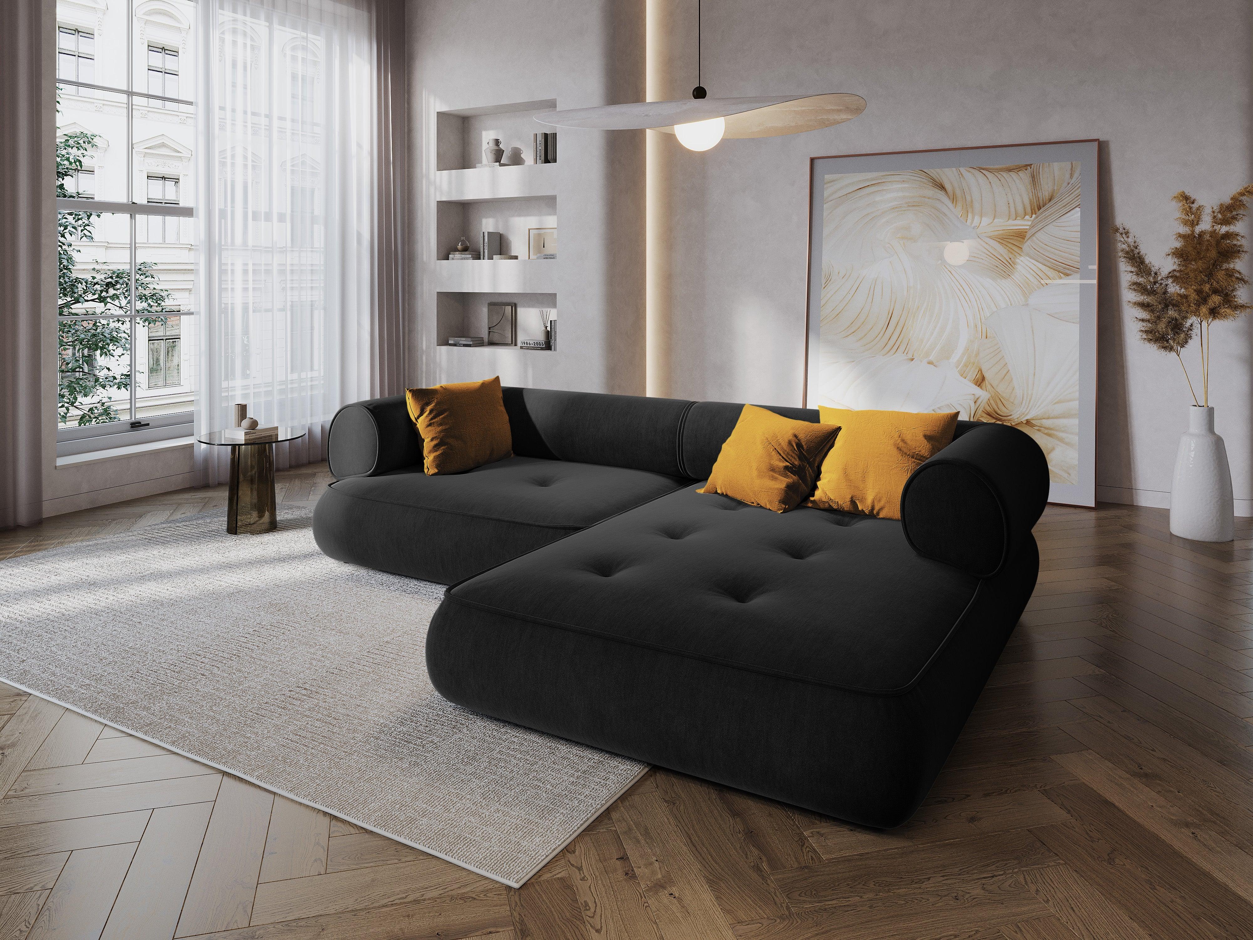 Rechthoekige bank in chenille stof, rechts LILY antraciet
