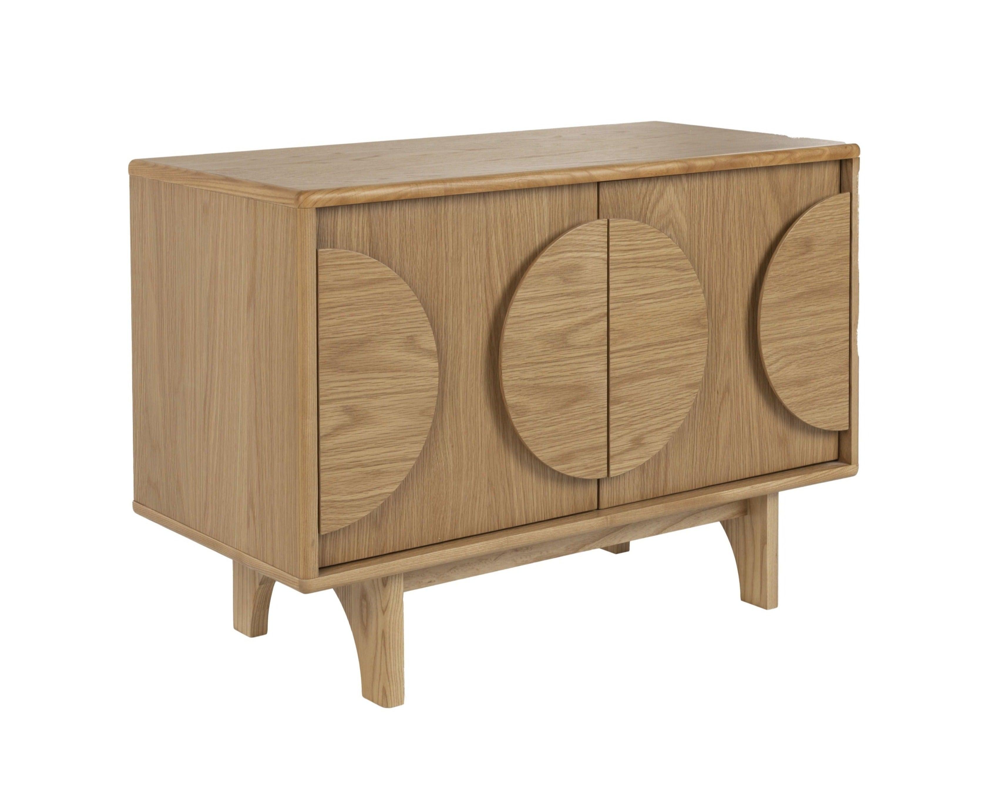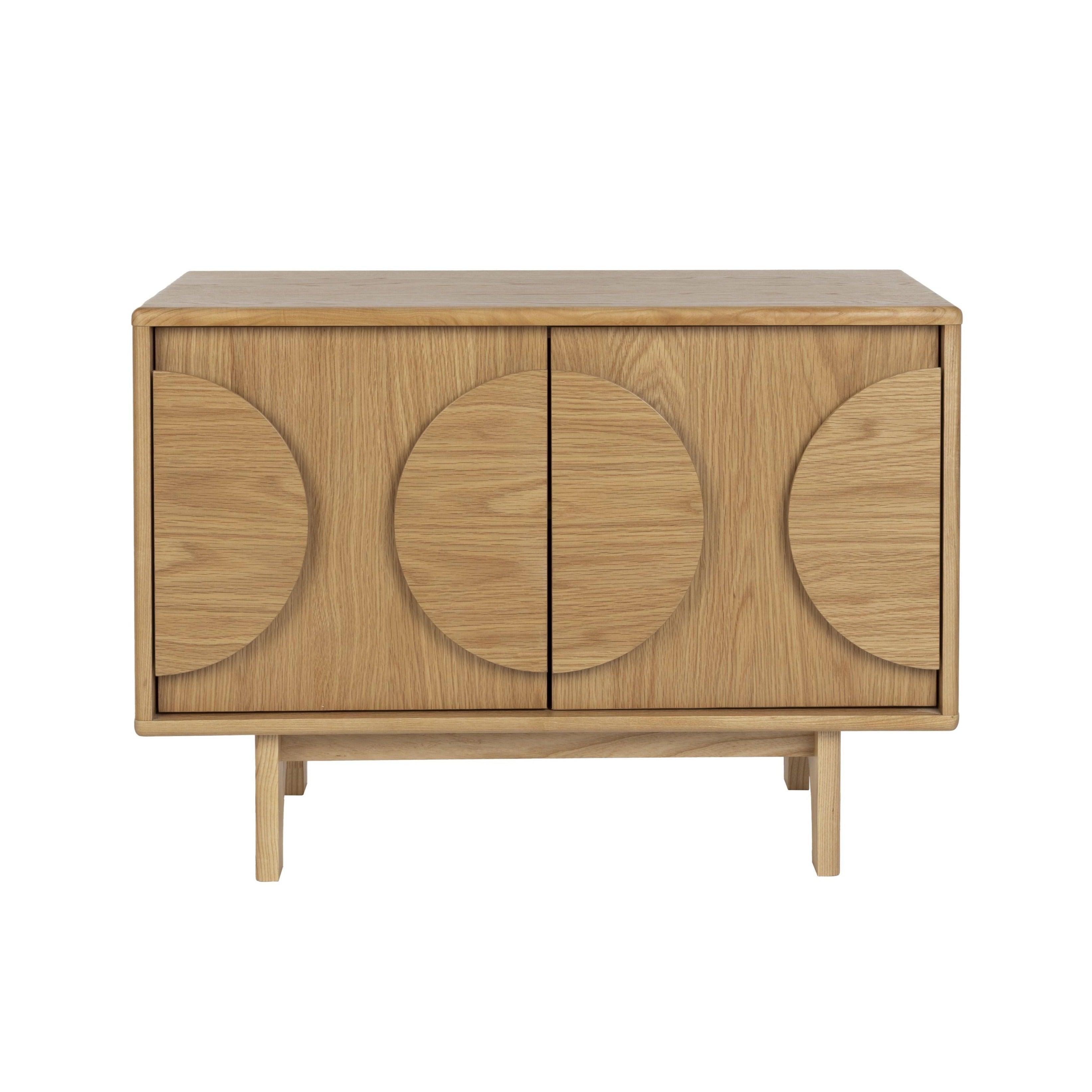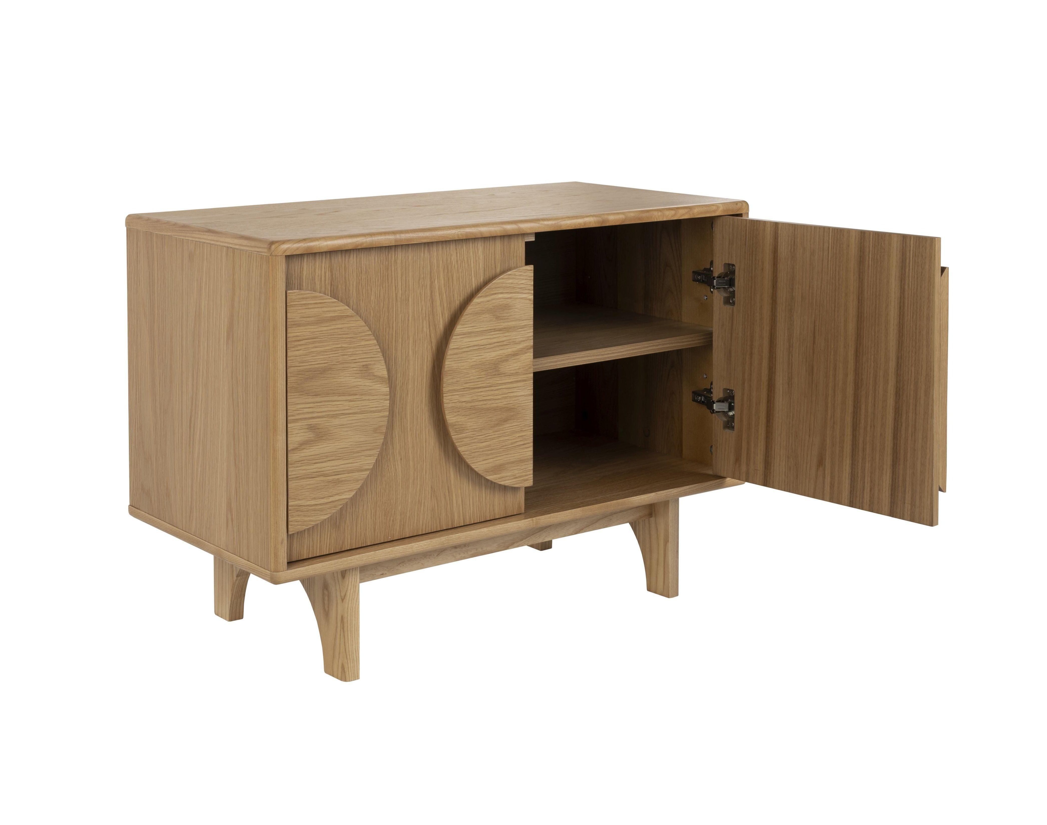 Geniet van een ruime opbergruimte zonder in te boeten op stijl met de kast Groove. Deze kast kenmerkt zich door ronde houten elementen op de deuren en elegante, ronde poten die een unieke accent toevoegen. Groove is de perfecte combinatie van stijl en functionaliteit; het past moeiteloos in elke ruimte.