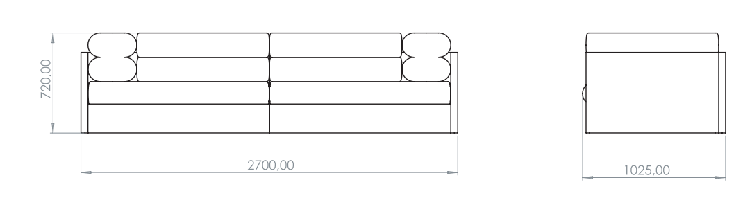 Dankzij zijn veelzijdigheid is de bank een ideale oplossing voor moderne interieurs, met zowel een elegant design als functionaliteit. Volledig gestoffeerd, met de mogelijkheid om verschillende stoffen te kiezen, past het perfect in diverse arrangementen en brengt het subtiele luxe en comfort in de ruimtes.