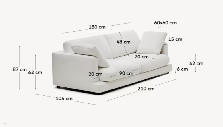 De toegestane tolerantiegraad voor gestoffeerde meubels bedraagt ±4 cm. Deze verschillen zijn het gevolg van de eigenschappen van de gebruikte materialen en de specificiteit van het stoffeerproces.