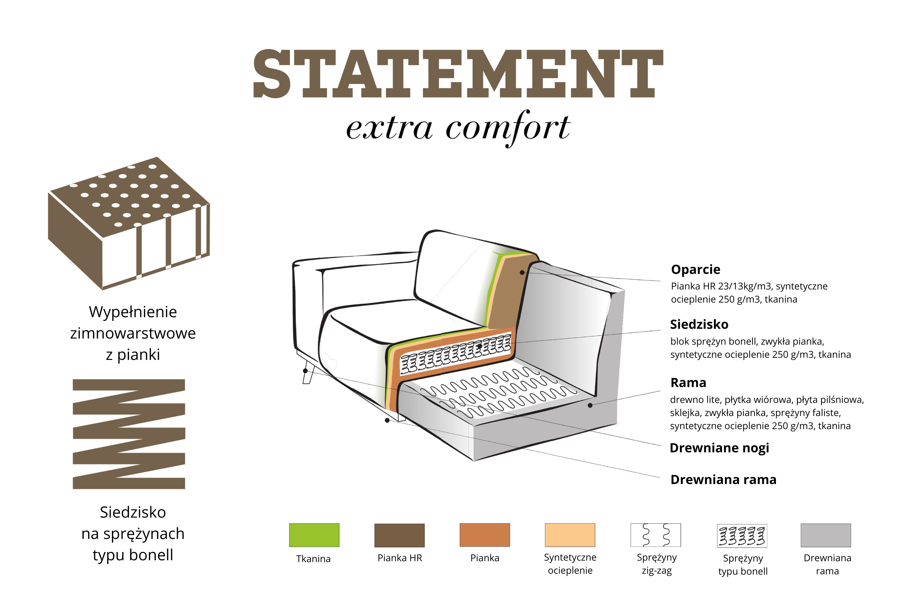 De klassieke kleuren geven dit meubel een unieke uitstraling, die perfect samengaat met verschillende interieurstijlen - van modern tot klassiek of industrieel. De comfortabele zitting en rugleuning bieden een prettige omgeving om te ontspannen na een drukke dag. Voor zowel gezinnen als voor degenen die een unieke stijl waarderen, is de sofa Statement een uitstekende aanvulling op elke woonkamer of zitkamer.