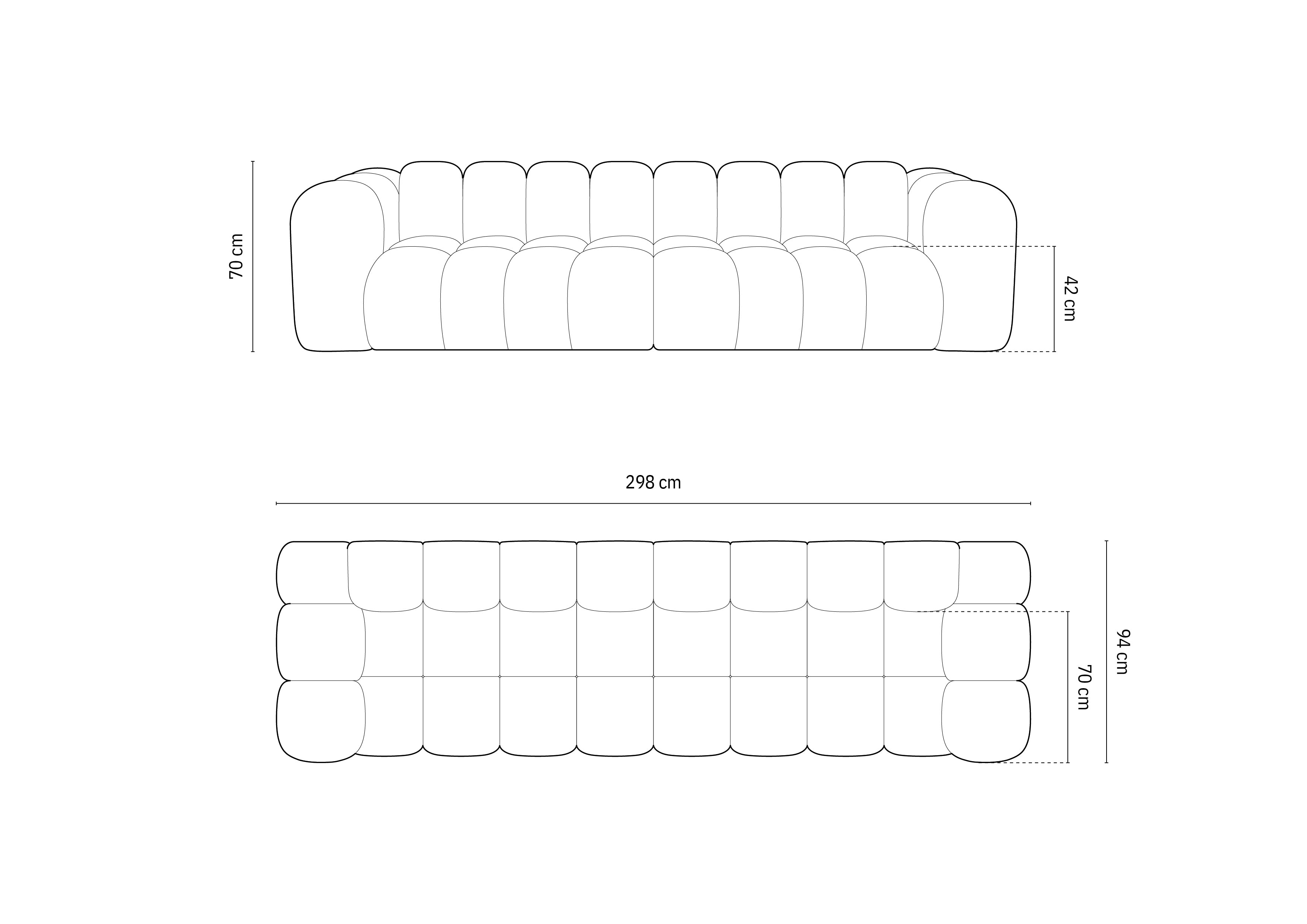 De toegestane tolerantiegraad voor gestoffeerde meubels bedraagt ±4 cm. Deze verschillen zijn het gevolg van de eigenschappen van de gebruikte materialen en de specificiteit van het stoffeerproces.