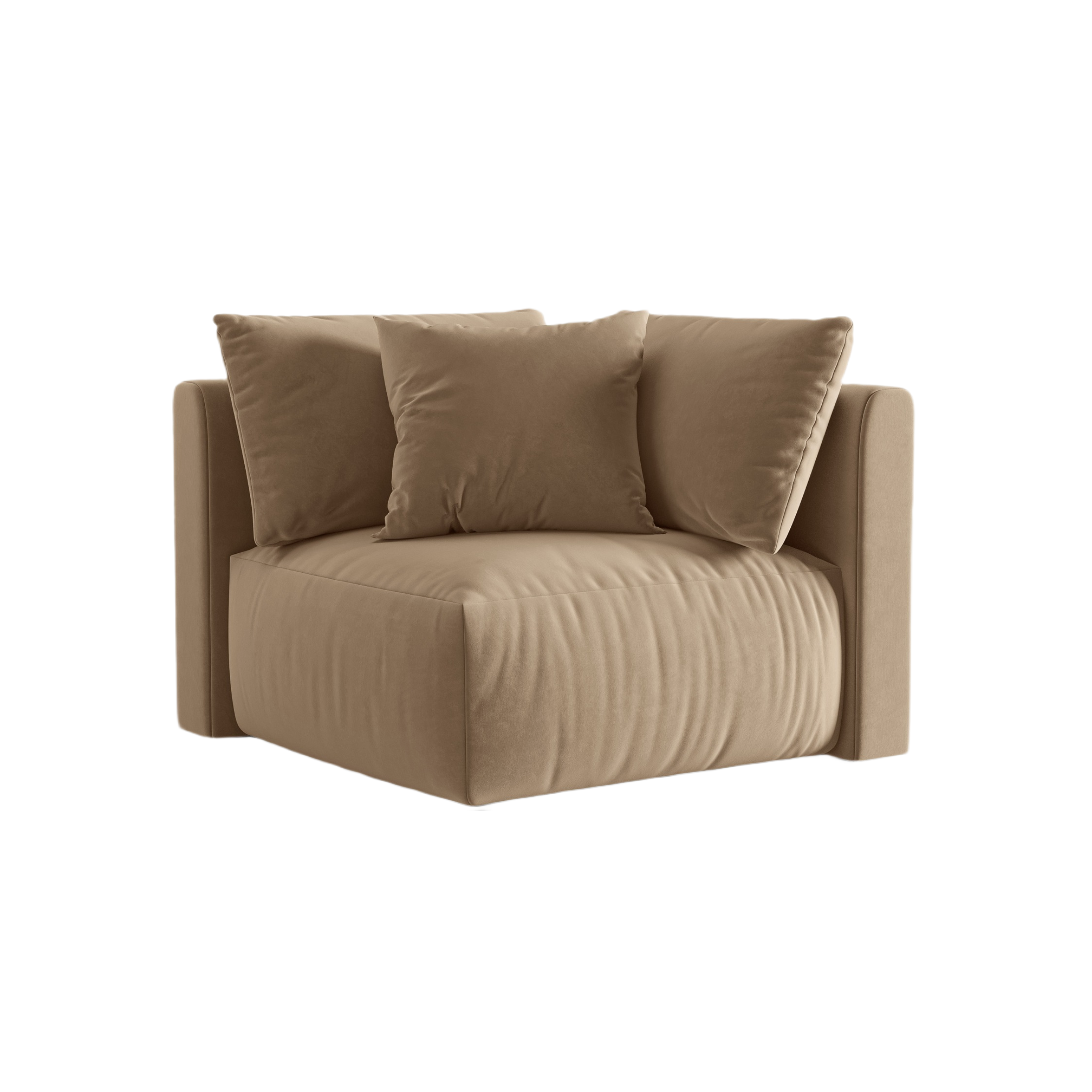 Modulaire fluwelen bank CHRIS - hoekelement zandkleurig