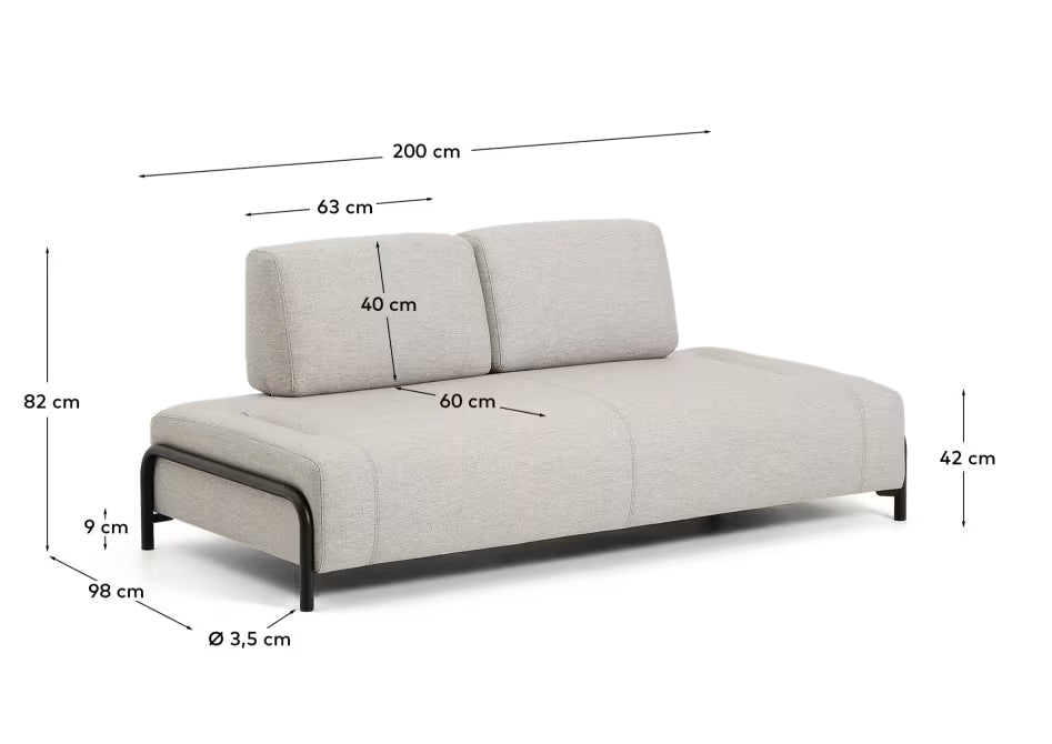Modulaire 2-zitsbank COMPO grijsbeige met zwarte basis