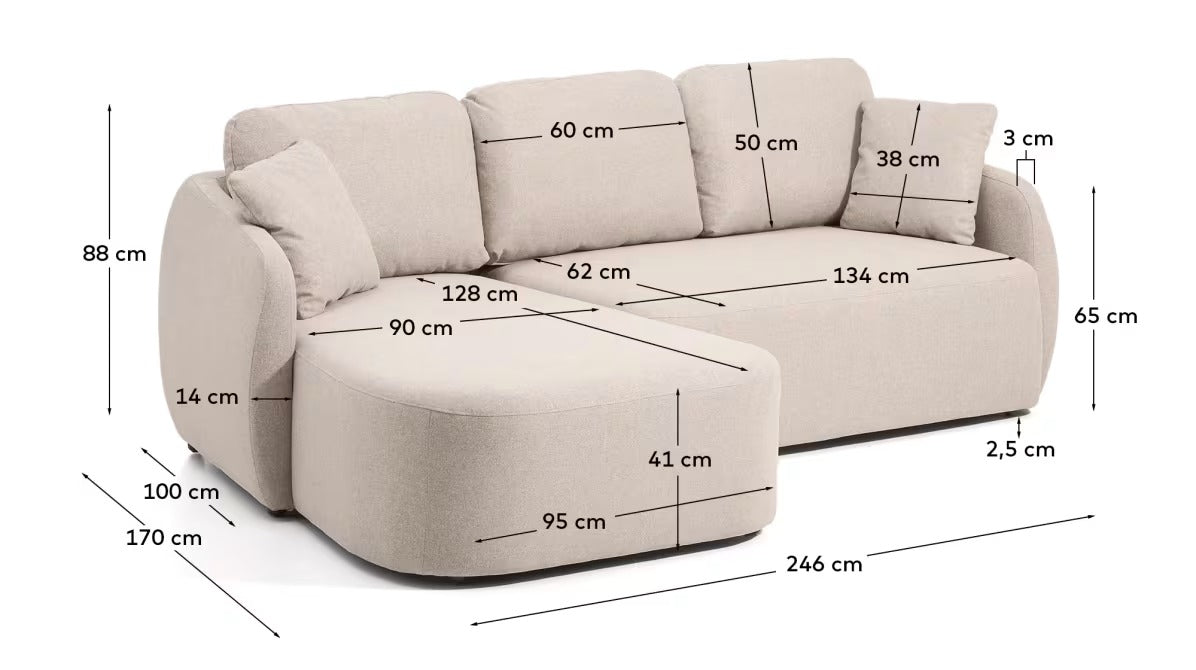 Links hoekbank voor 3 personen met slaapfunctie LAIRA beige