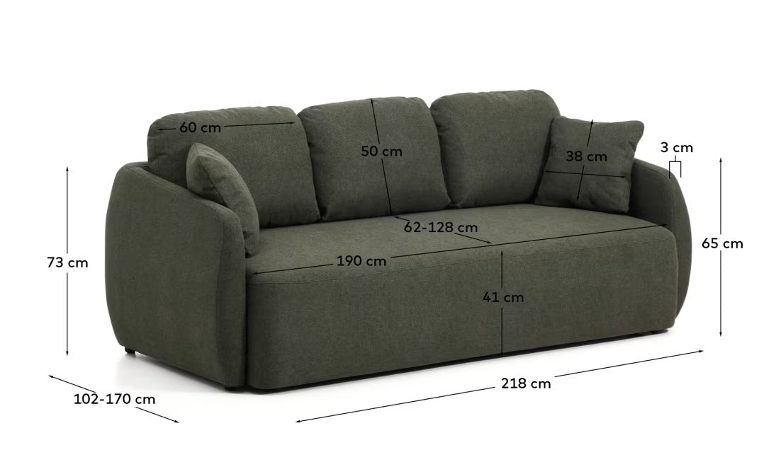 Sofa Laira onderscheidt zich door de hoogwaardige bekleding van chenille met een losse weving, die een uitzonderlijke zachtheid aanraakt en een hoge slijtvastheid biedt. Dankzij het Y-open systeem kan de sofa eenvoudig en snel worden omgevormd tot een comfortabel bed van 150 x 190 cm op het langste punt, dankzij het gesynchroniseerde openingsmechanisme. Na het uitklappen kan het ook fungeren als een doorlopende chaise longue, wat extra comfort biedt.