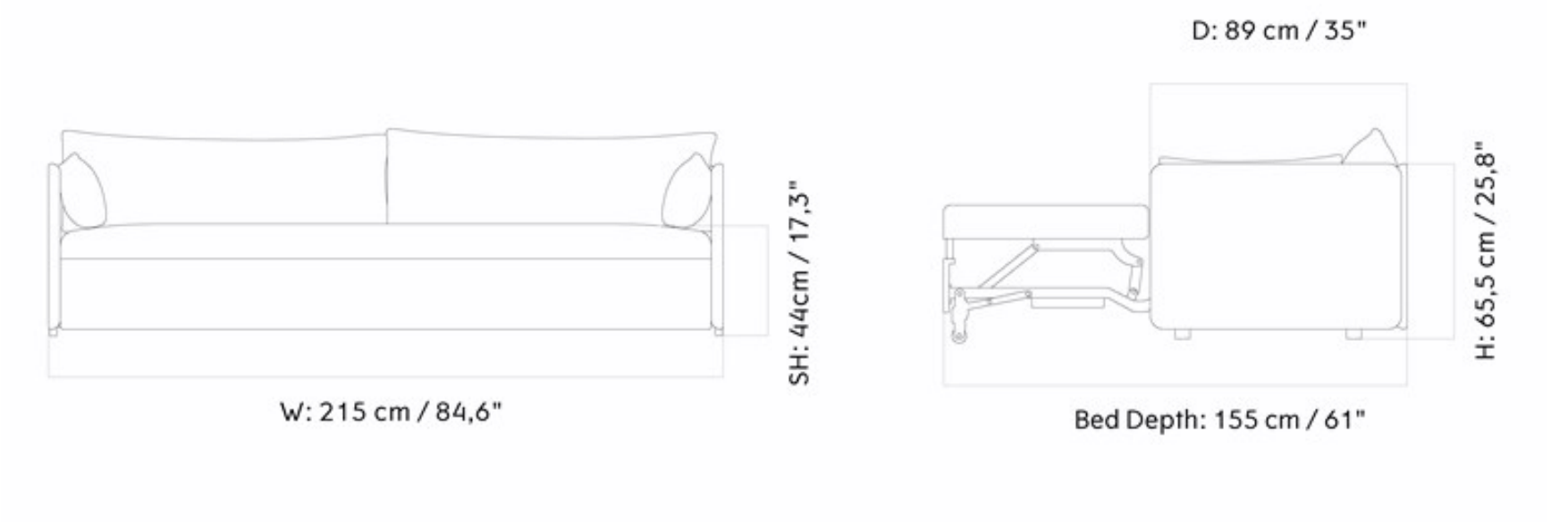 Sofa met slaapfunctie 3-zits OFFSET lichtbeige