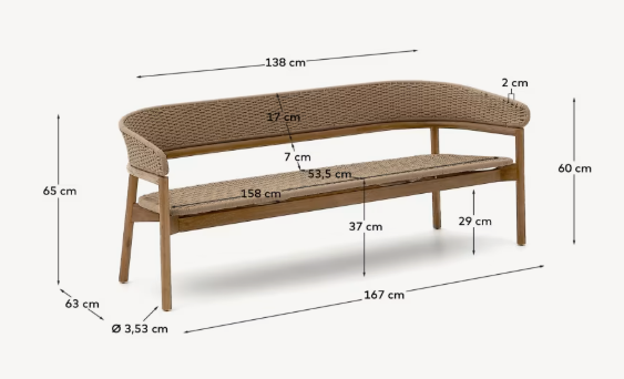 Buitenbank ARINELLA van licht acaciahout met beige touw