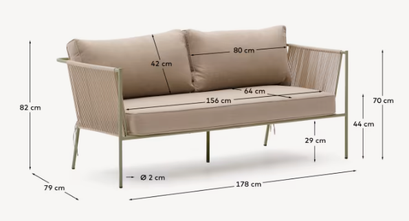 Zivia is een tweepersoonsbank die moderne esthetiek combineert met duurzaamheid en comfort. De gegalvaniseerde stalen constructie in een groene afwerking is bijzonder bestand tegen corrosie en slijtage, waardoor het perfect is voor buitenruimtes. De rugleuning van handgeweven synthetisch touw dat bestand is tegen UV-straling voegt de bank subtiele elegantie toe en biedt uitzonderlijk gebruikscomfort.