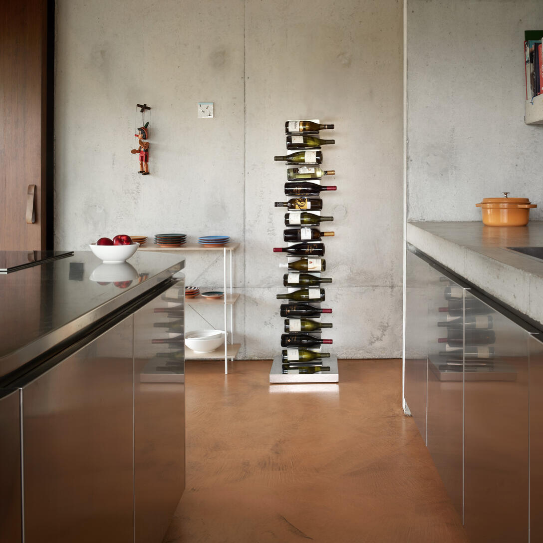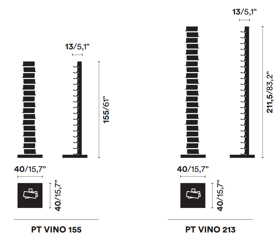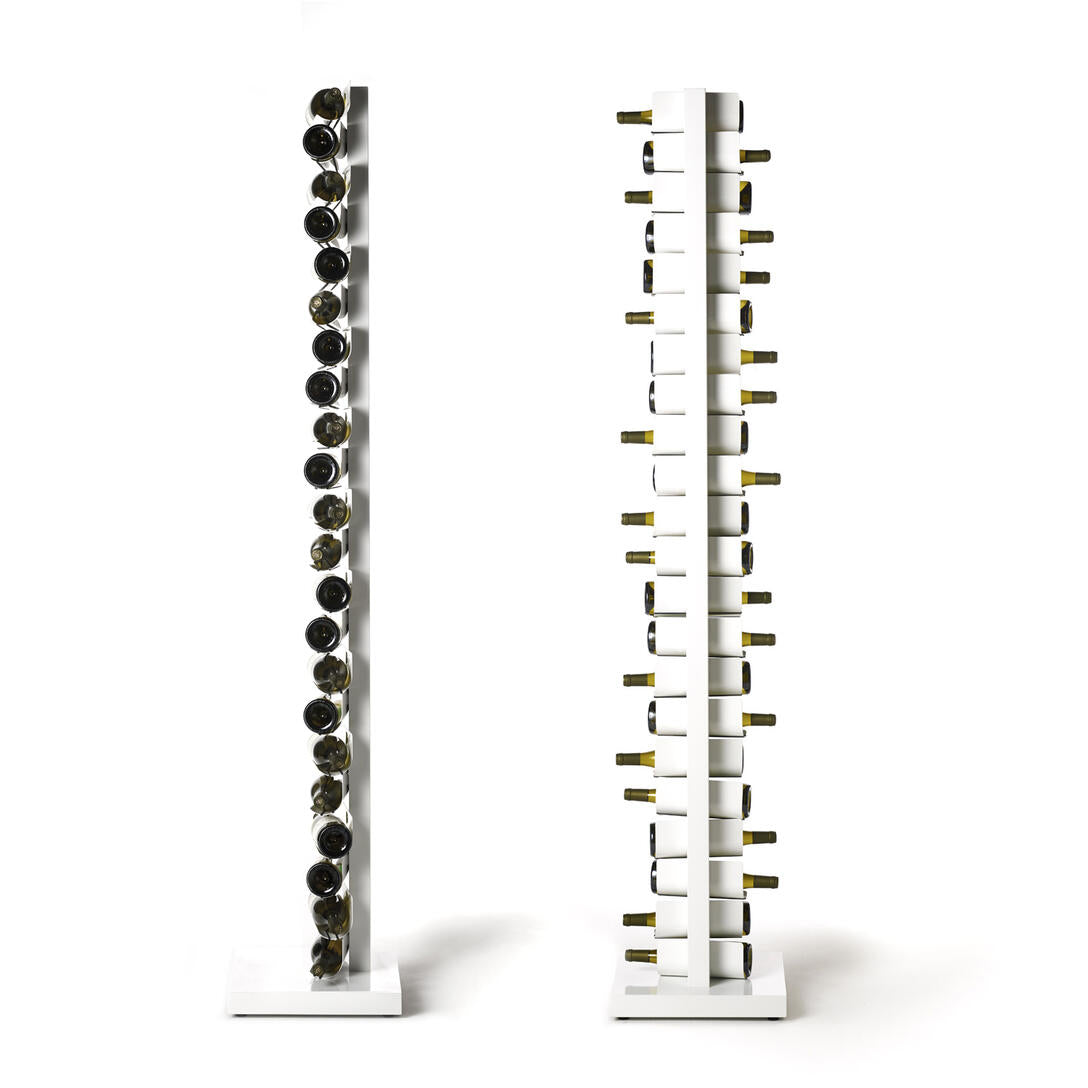 Beschikbaar in twee hoogtes en verschillende kleurvarianten – waaronder mat zwart, glanzend wit, cortenstaal en roestvrij staal – past Ptolomeo Vino perfect in zowel moderne woonruimtes als commerciële omgevingen: restaurants, wijnhuizen of hotel-lobby's. Antislip flexibele banden zorgen ervoor dat elke fles veilig is, wat bijdraagt aan de juiste opslag en het rijpingsproces.