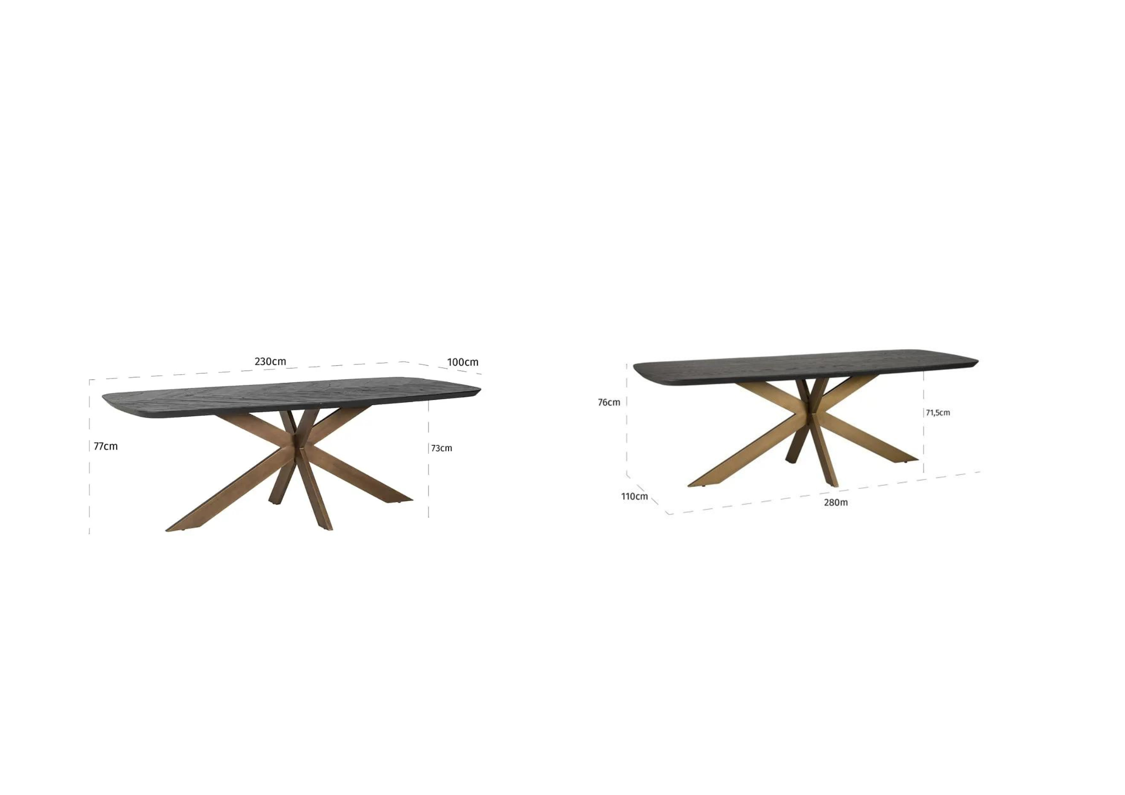 Tafel op een kruisvoetbasis Cambon is een ware parel van designambacht, die zwarte MDF-platen combineert met verfijnd eikenhout. Deze unieke combinatie kenmerkt de hele Cambon-collectie, en de eettafel is een luxe product dat elegantie in elke eetkamer of woonkamer brengt. Zijn aanwezigheid zal het hoogtepunt in uw huis worden en een bron van bewondering voor uw gasten.