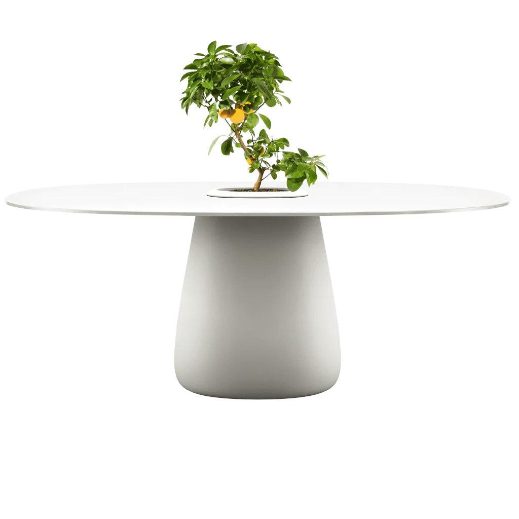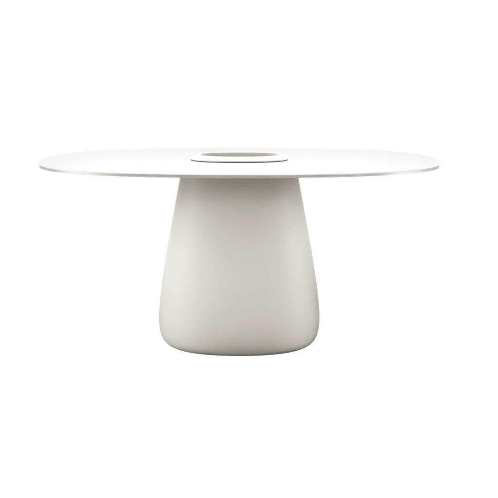 De brugtafel, ontworpen door Elisa Giovannoni, heeft een centrale basis waarin een emmer met planten of ijs kan worden geplaatst om de flessen koel te houden. Het dunne tafelblad is gemaakt van materialen die geschikt zijn voor zowel binnen- als buitengebruik, zoals hpl (in volle kleur of zwart gelaagd) in combinatie met verschillende kleuren. Verkrijgbaar met een tafelblad met een diameter van 160.