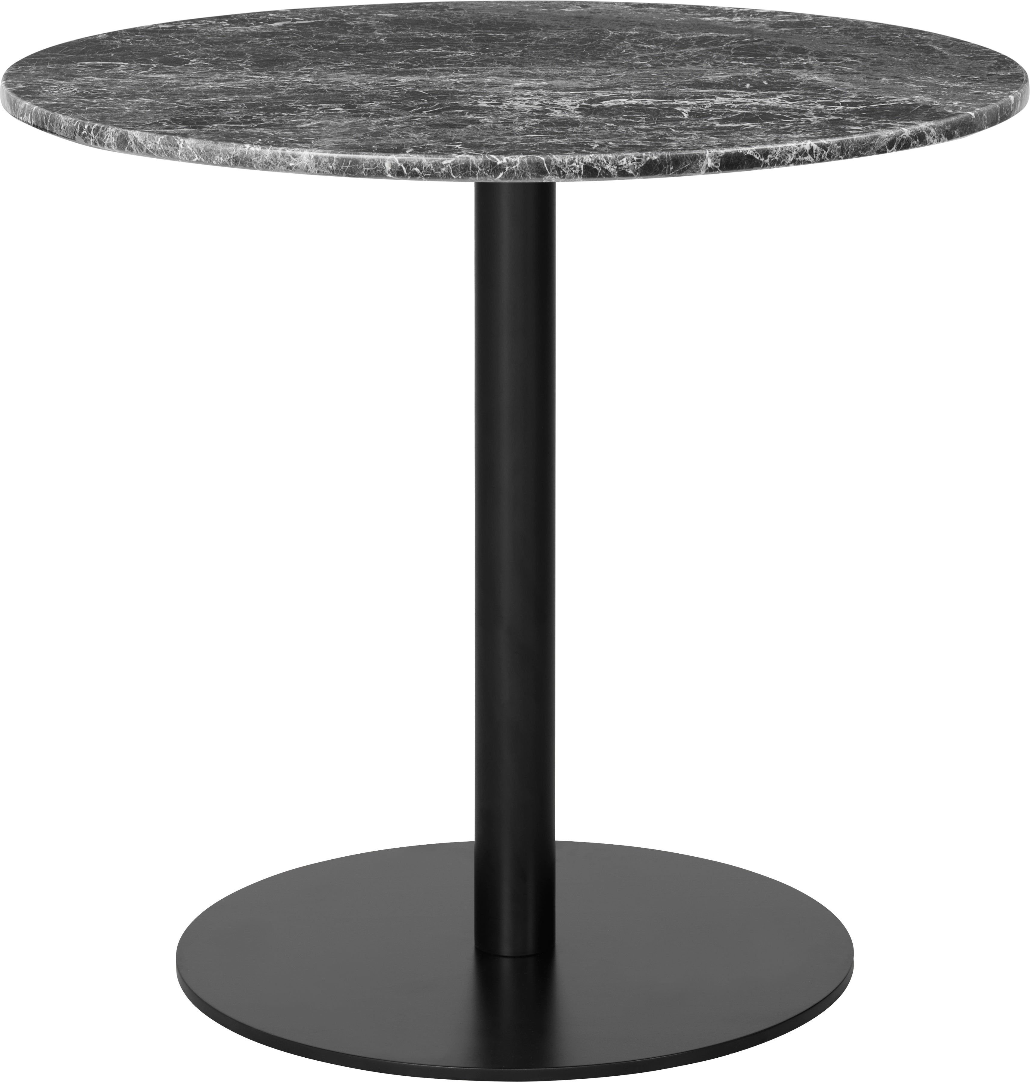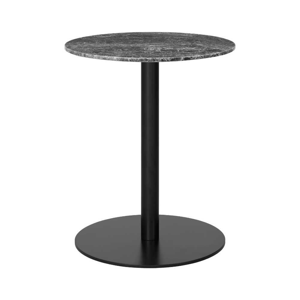 Ronde tafel 1.0 grijs marmer met zwarte basis