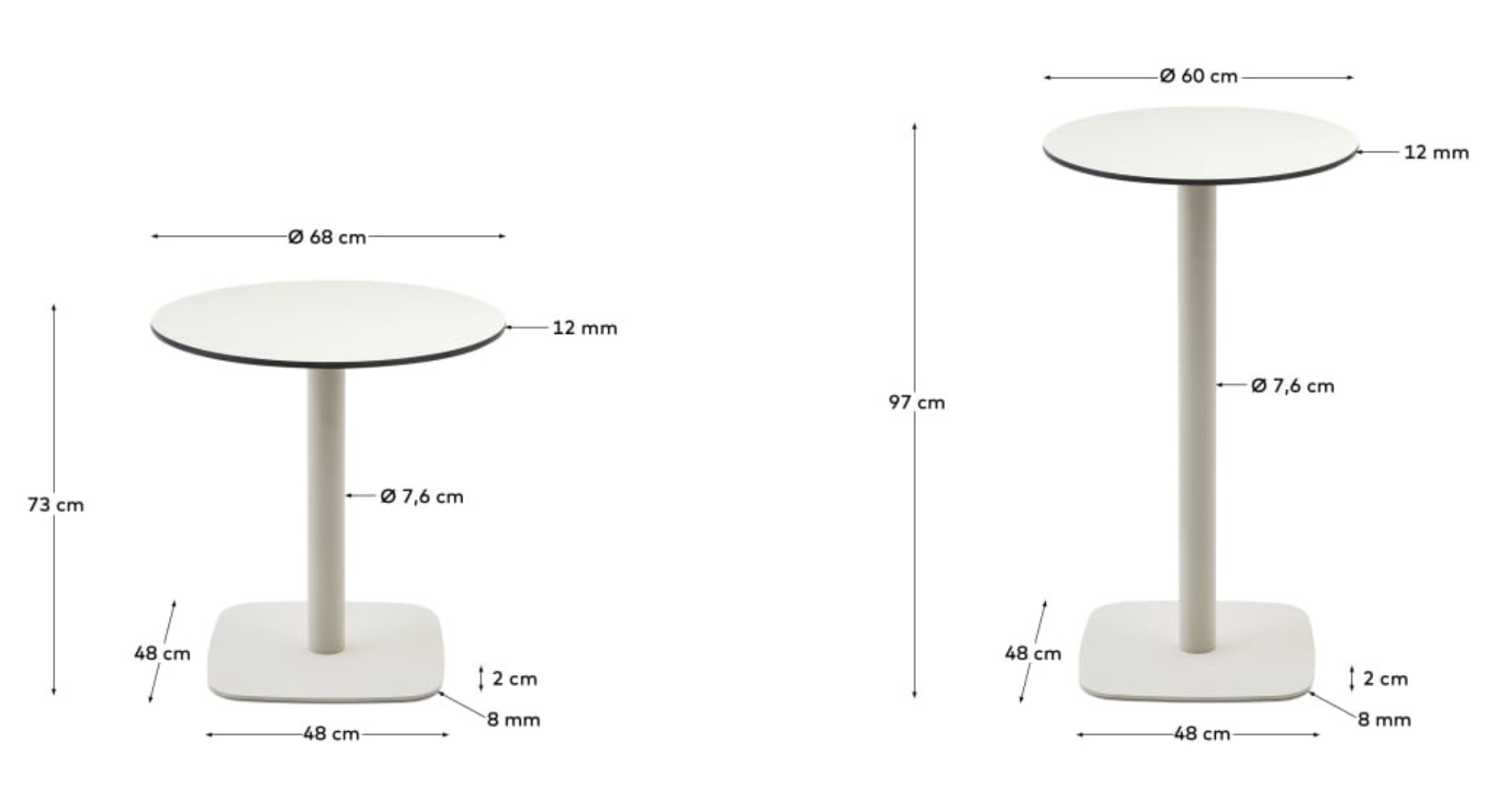 Het ronde tafelblad geeft het een verfijnde uitstraling, terwijl de stevige metalen basis stabiliteit en duurzaamheid biedt. De kleur wit voegt elegantie en lichtheid toe, waardoor het zowel past in moderne als klassieke interieurs, en de ruimte een heldere en ruime uitstraling geeft.