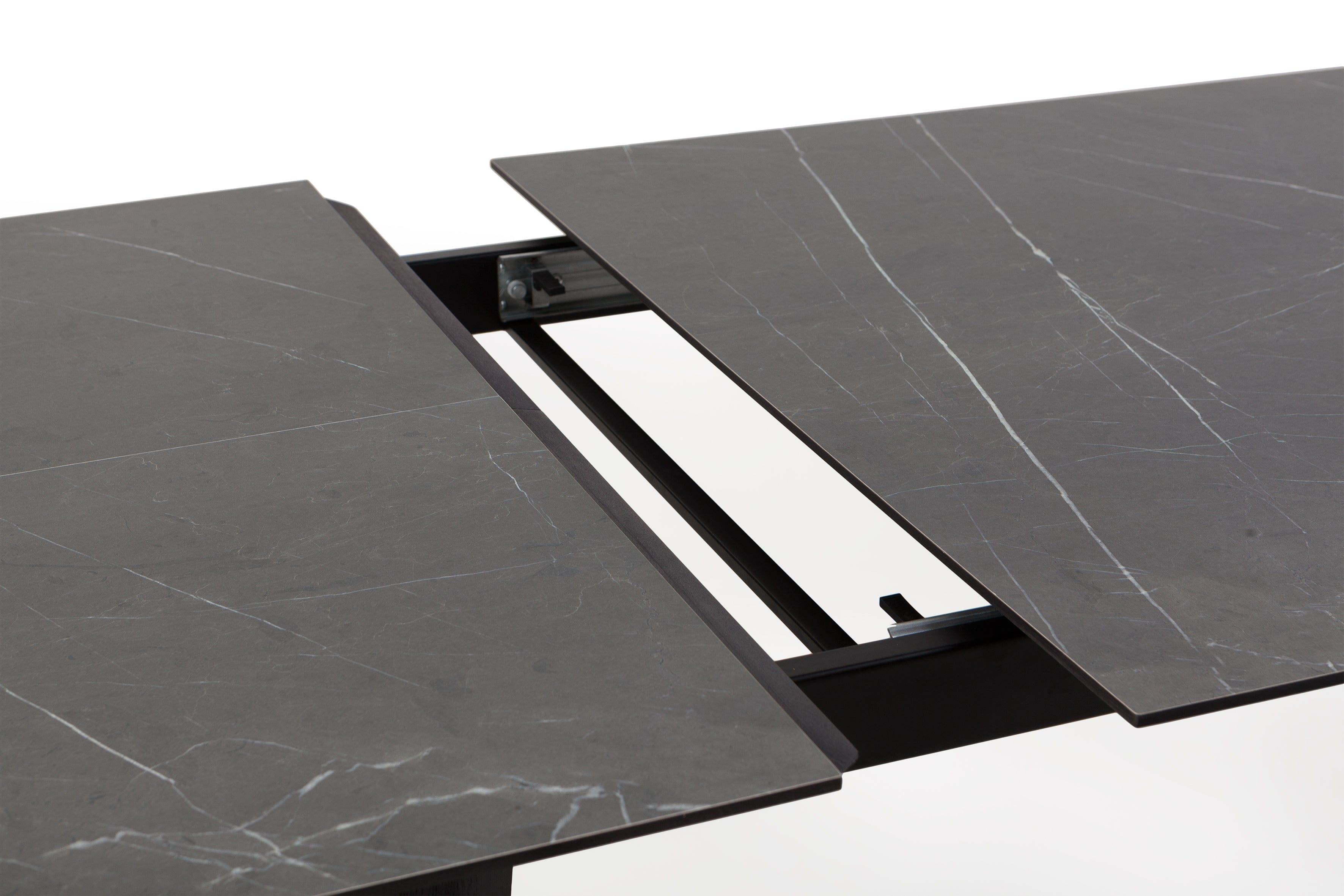 Op een eenvoudige manier kan de tafel met een verschuiving van het blad en het gebruik van een aanbouwblad met 60 cm worden vergroot. Dit is bijzonder handig tijdens familie bijeenkomsten. De precieze verbinding van de eiken poten en het stalen frame garandeert stevigheid en stabiliteit, terwijl de mooie details de aandacht van elke gast zullen trekken.